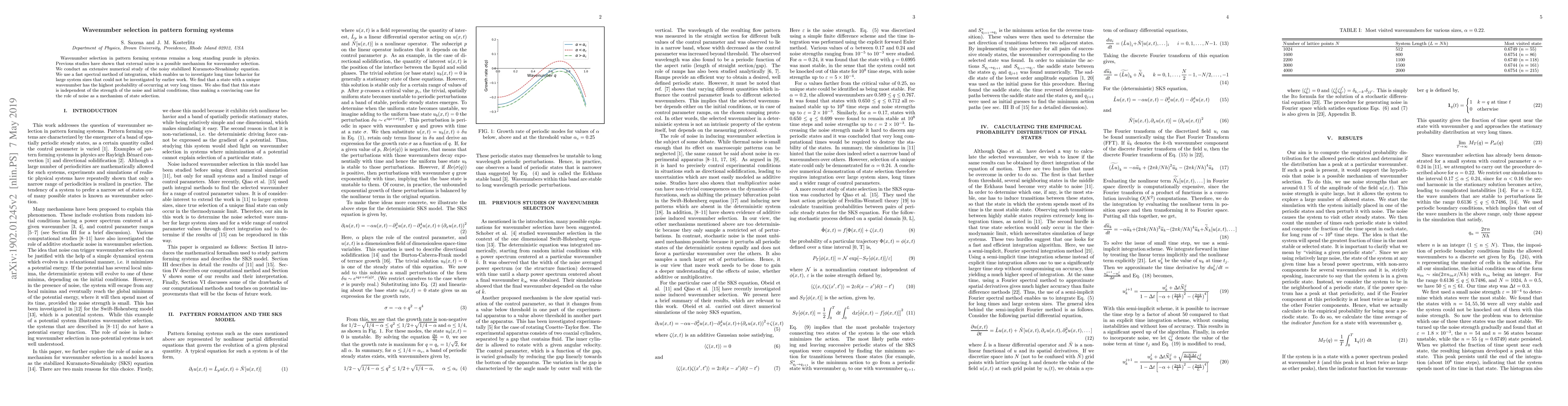 This paper investigates wavenumber selection in pattern forming systems using the noisy stabilized Kuramoto Sivashinsky equation. Through extensive numerical simulations, the authors demonstrate that a unique wavenumber state is most probable at long times, independent of noise strength and initial conditions, supporting noise as a key mechanism for wavenumber selection.