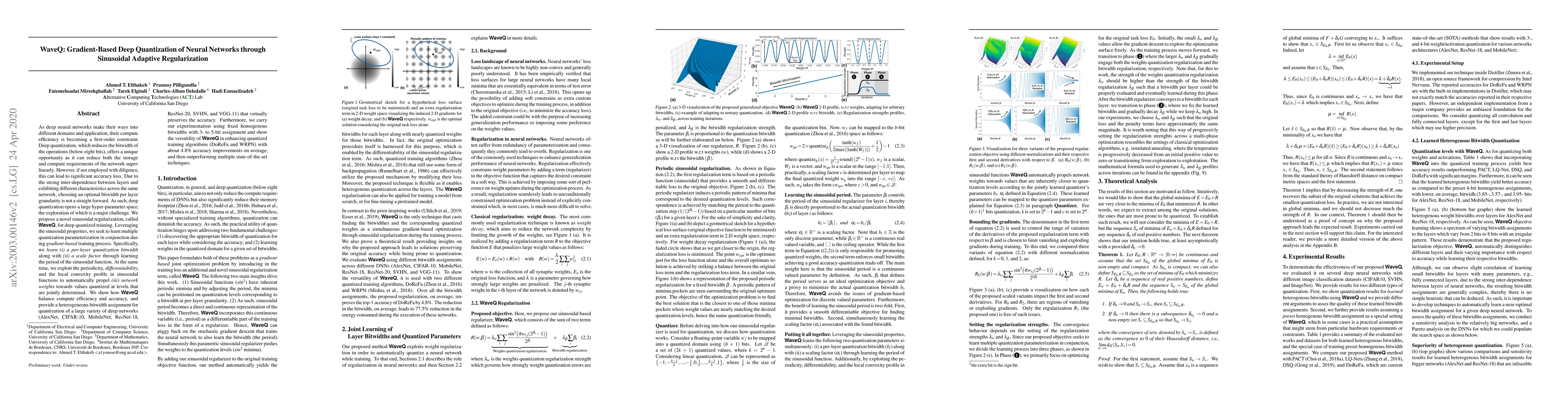 The paper proposes SINAREQ, a sinusoidal adaptive regularization method for gradient-based deep quantization of neural networks, which aims to balance compute efficiency with accuracy. SINAREQ learns per-layer quantization bitwidth and scale factors, leveraging sinusoidal properties to optimize network weights and achieve heterogeneous bitwidth assignments that preserve accuracy.
