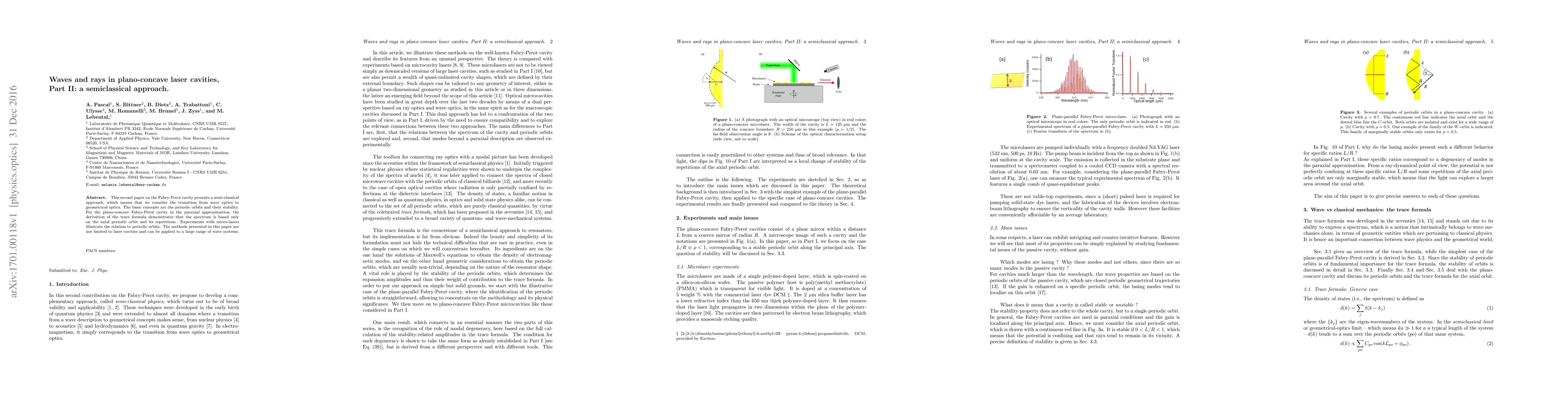 This second paper on the Fabry-Perot cavity presents a semi-classical approach, which means that we consider the transition from wave optics to geometrical optics. The basic concepts are the periodic orbits and their stability. For the plano-concave Fabry-Perot cavity in the paraxial approximation, the derivation of the trace formula demonstrates that the spectrum is based only on the axial periodic orbit and its repetitions. Experiments with micro-lasers illustrate the relation to periodic orbits. The methods presented in this paper are not limited to laser cavities and can be applied to a large range of wave systems.