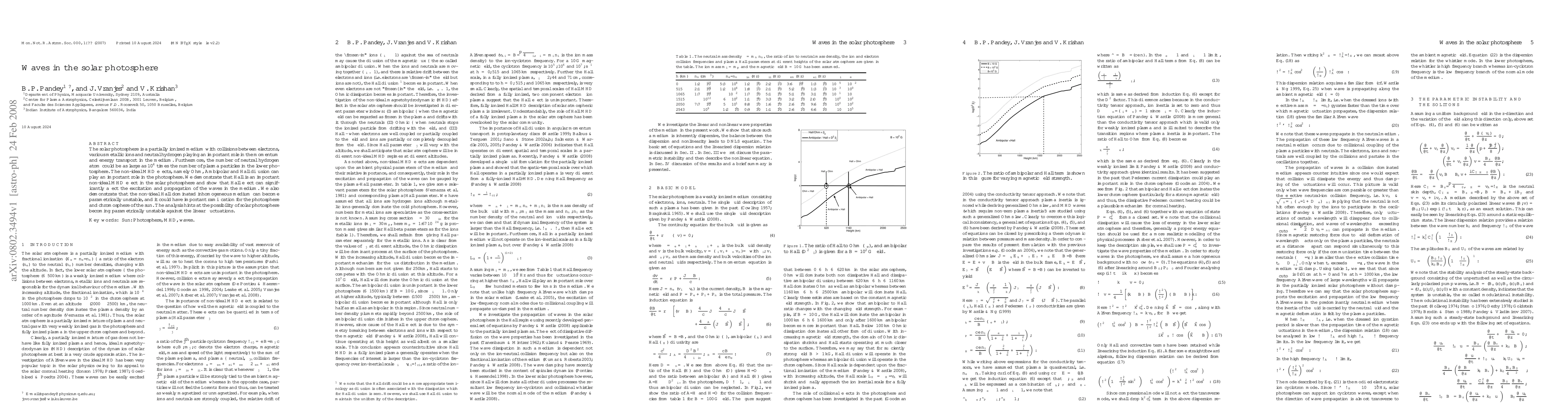 This paper investigates the role of non-ideal magnetohydrodynamic (MHD) effects, particularly the Hall effect, in the solar photosphere, demonstrating its significant impact on wave excitation and propagation. It suggests that the photosphere may become parametrically unstable, with implications for solar dynamics.