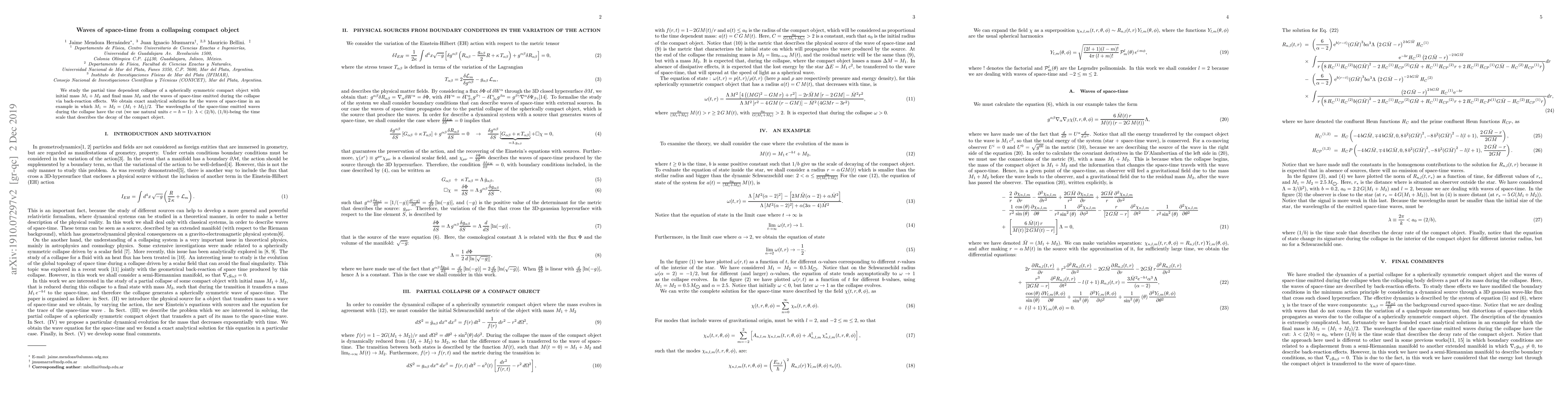 Researchers studied the collapse of a compact object emitting space-time waves with unique wavelengths dependent on its decay time scale.