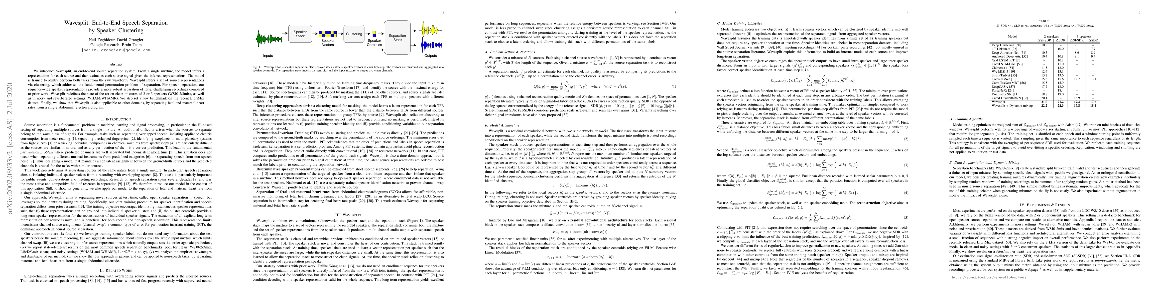 Wavesplit is an end-to-end speech separation system that infers speaker representations via clustering to address the permutation problem, achieving state-of-the-art results on multiple datasets, including clean, noisy, and reverberant recordings, and demonstrating applicability beyond speech, such as fetal and maternal heart rate separation.