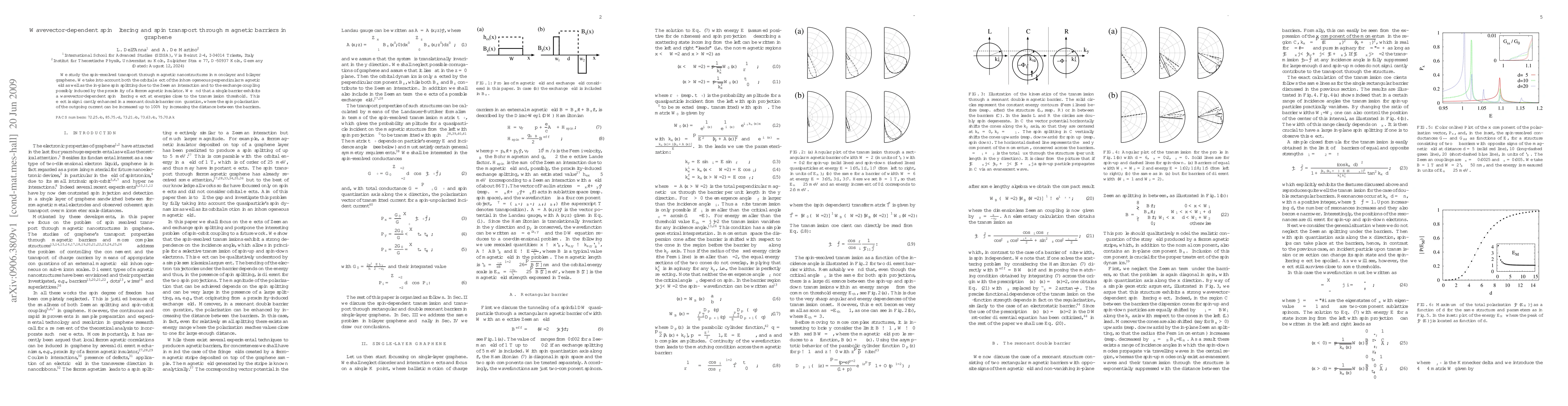 This paper investigates spin-resolved transport in magnetic nanostructures within graphene, revealing wavevector-dependent spin filtering near transmission thresholds. A double barrier configuration significantly enhances spin polarization, achieving up to 100% by adjusting barrier spacing.