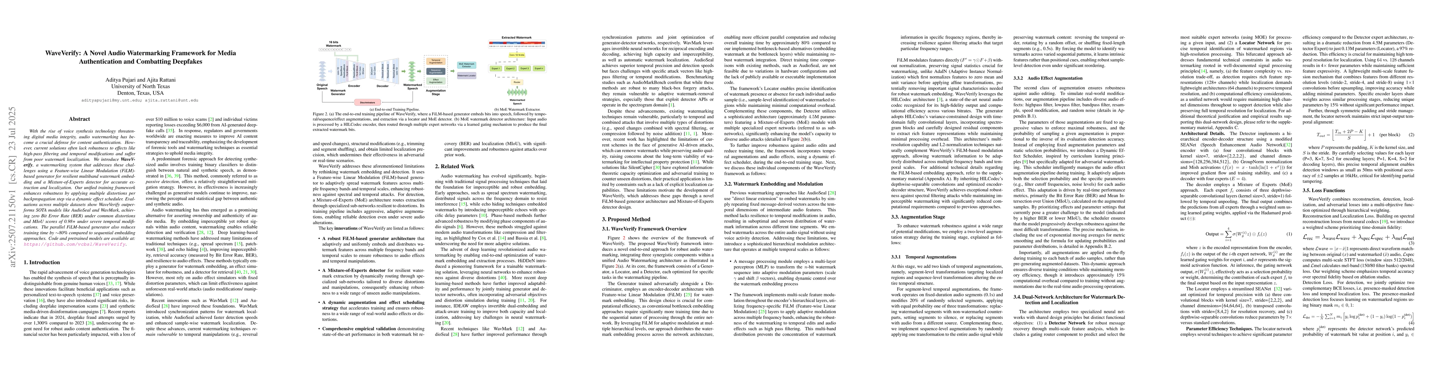 The rapid advancement of voice generation technologies has enabled the synthesis of speech that is perceptually indistinguishable from genuine human voices. While these innovations facilitate beneficial applications such as personalized text-to-speech systems and voice preservation, they have also introduced significant risks, including deepfake impersonation scams and synthetic media-driven disinformation campaigns. Recent reports indicate that in 2024, deepfake fraud attempts surged by over 1,300% compared to 2023, underscoring the urgent need for robust audio content authentication. The financial sector has been particularly impacted, with a loss of over 10 million USD to voice scams and individual victims reporting losses exceeding $6,000 from AI-generated deepfake calls. In response, regulators and governments worldwide are enacting measures to improve AI content transparency and traceability, emphasizing the development of forensic tools and watermarking techniques as essential strategies to uphold media integrity.