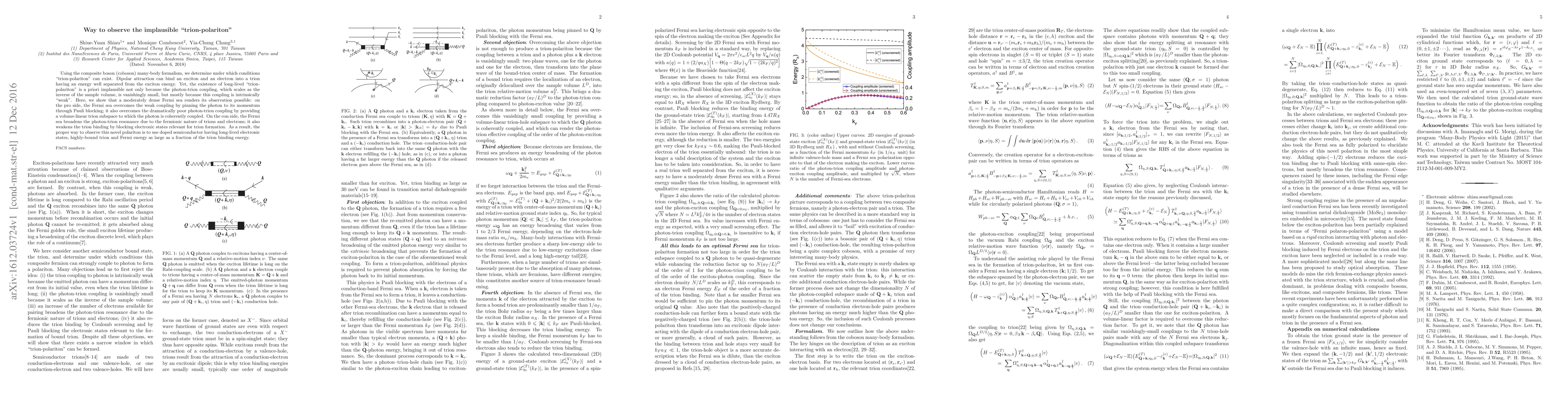 Using the composite boson (coboson) many-body formalism, we determine under which conditions "trion-polariton" can exist. Dipolar attraction can bind an exciton and an electron into a trion having an energy well separated from the exciton energy. Yet, the existence of long-lived "trion-polariton" is a priori implausible not only because the photon-trion coupling, which scales as the inverse of the sample volume, is vanishingly small, but mostly because this coupling is intrinsically "weak". Here, we show that a moderately dense Fermi sea renders its observation possible: on the pro side, the Fermi sea overcomes the weak coupling by pinning the photon to its momentum through Pauli blocking, it also overcomes the dramatically poor photon-trion coupling by providing a volume-linear trion subspace to which the photon is coherently coupled. On the con side, the Fermi sea broadens the photon-trion resonance due to the fermionic nature of trions and electrons, it also weakens the trion binding by blocking electronic states relevant for trion formation. As a result, the proper way to observe this novel polariton is to use doped semiconductor having long-lived electronic states, highly-bound trion and Fermi energy as large as a fraction of the trion binding energy.