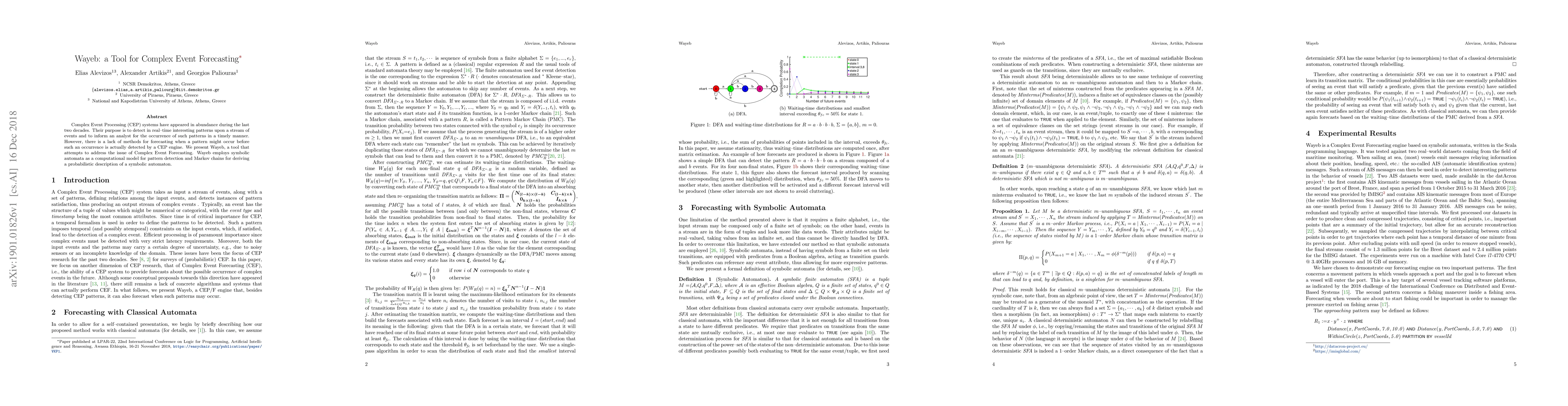 Wayeb is a tool designed for Complex Event Forecasting, utilizing symbolic automata and Markov chains to predict when patterns might occur in real-time event streams before they are detected by traditional CEP systems. This approach aims to enhance the timeliness of pattern detection in complex event processing.