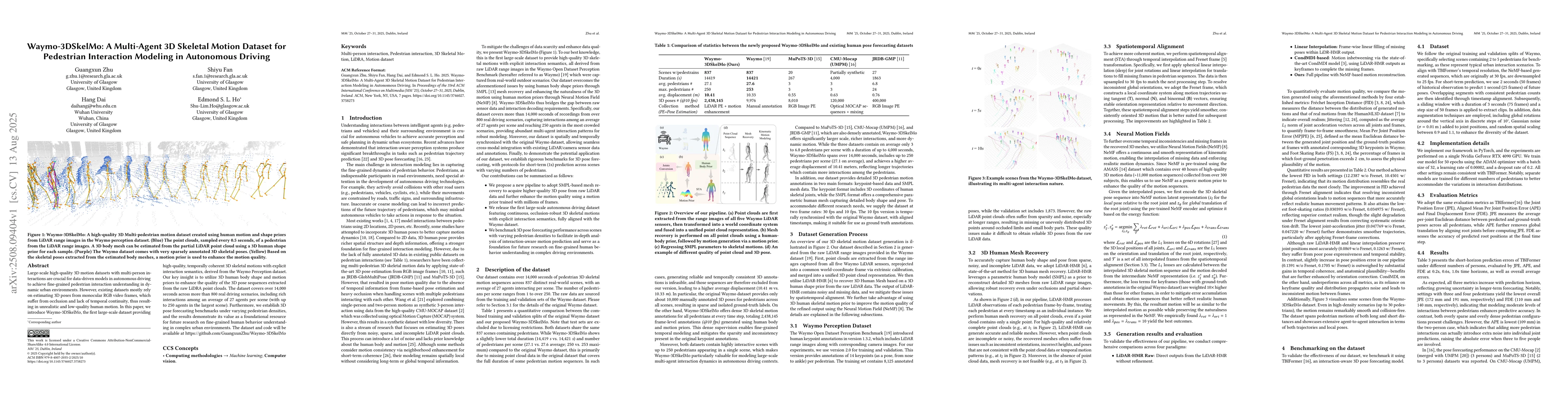 Large-scale high-quality 3D motion datasets with multi-person interactions are crucial for data-driven models in autonomous driving to achieve fine-grained pedestrian interaction understanding in dynamic urban environments. However, existing datasets mostly rely on estimating 3D poses from monocular RGB video frames, which suffer from occlusion and lack of temporal continuity, thus resulting in unrealistic and low-quality human motion. In this paper, we introduce Waymo-3DSkelMo, the first large-scale dataset providing high-quality, temporally coherent 3D skeletal motions with explicit interaction semantics, derived from the Waymo Perception dataset. Our key insight is to utilize 3D human body shape and motion priors to enhance the quality of the 3D pose sequences extracted from the raw LiDRA point clouds. The dataset covers over 14,000 seconds across more than 800 real driving scenarios, including rich interactions among an average of 27 agents per scene (with up to 250 agents in the largest scene). Furthermore, we establish 3D pose forecasting benchmarks under varying pedestrian densities, and the results demonstrate its value as a foundational resource for future research on fine-grained human behavior understanding in complex urban environments. The dataset and code will be available at https://github.com/GuangxunZhu/Waymo-3DSkelMo