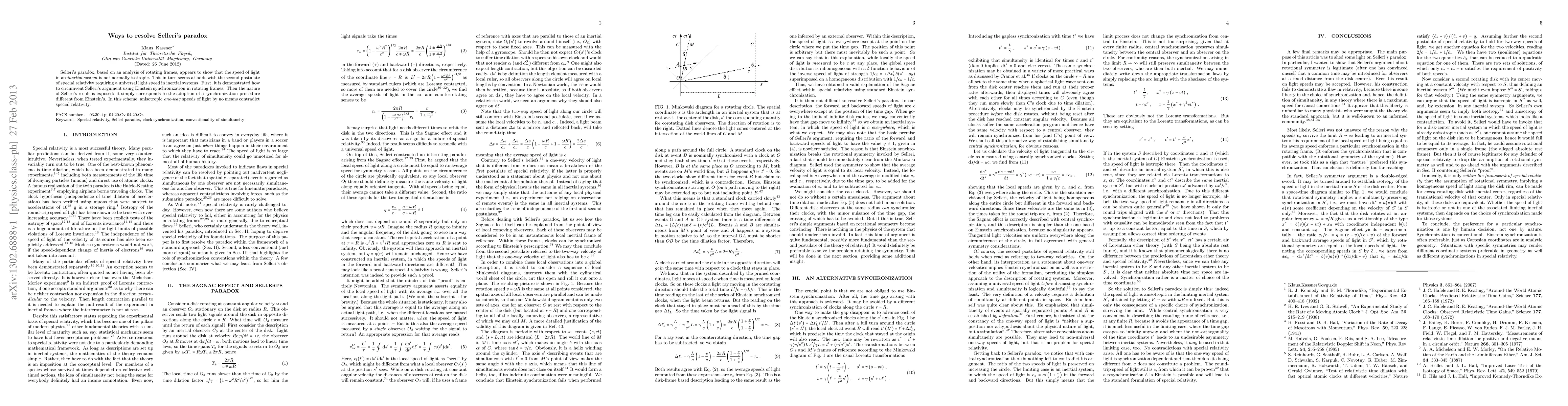 Selleri's paradox, based on an analysis of rotating frames, appears to show that the speed of light in an inertial system is not normally isotropic. This in turn seems at odds with the second postulate of special relativity requiring a universal light speed in inertial systems. First, it is demonstrated how to circumvent Selleri's argument using Einstein synchronization in rotating frames. Then the nature of Selleri's result is exposed: it simply corresponds to the adoption of a synchronization procedure different from Einstein's. In this scheme, anisotropic one-way speeds of light by no means contradict special relativity.