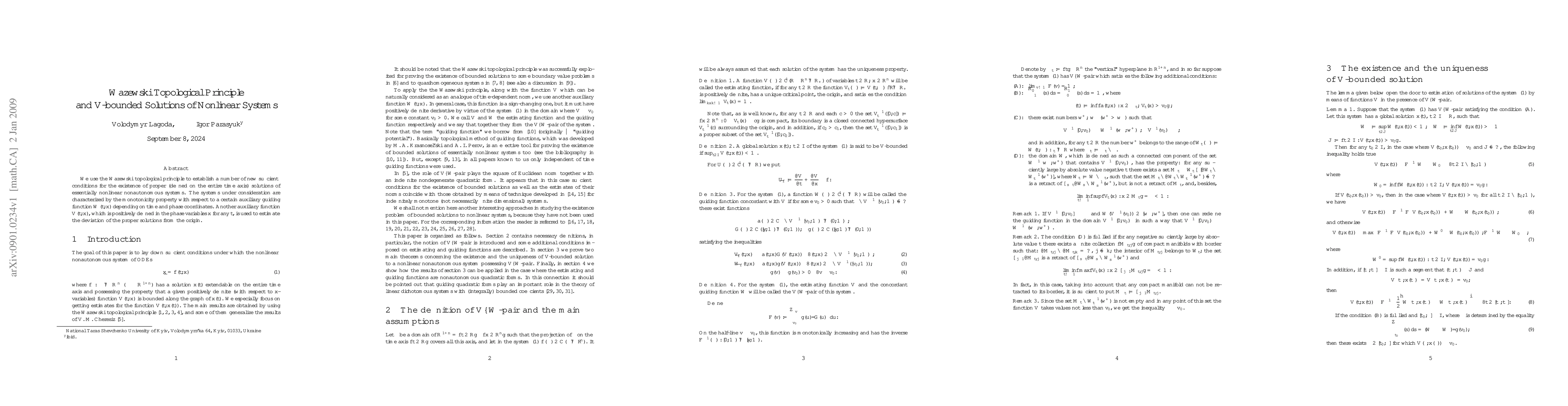 Summary: This paper applies the Wa\'zewski topological principle to derive new sufficient conditions for the existence of proper solutions to nonlinear nonautonomous systems, leveraging monotonicity properties and auxiliary guiding functions $W(t,x)$ and $V(t,x)$ to estimate solution behavior.