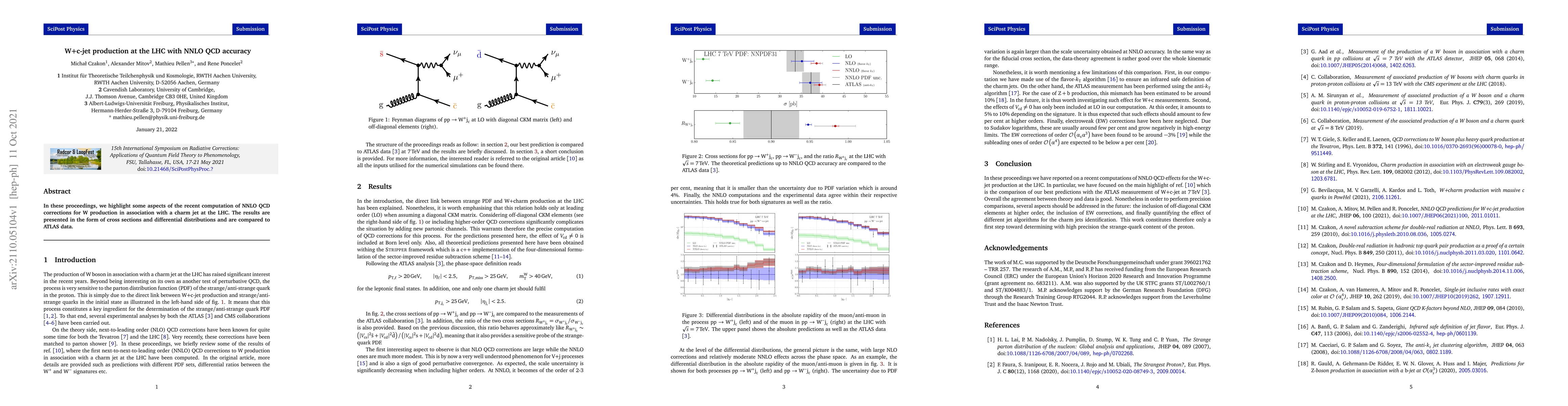 In these proceedings, we highlight some aspects of the recent computation of NNLO QCD corrections for W production in association with a charm jet at the LHC. The results are presented in the form of cross sections and differential distributions and are compared to ATLAS data.