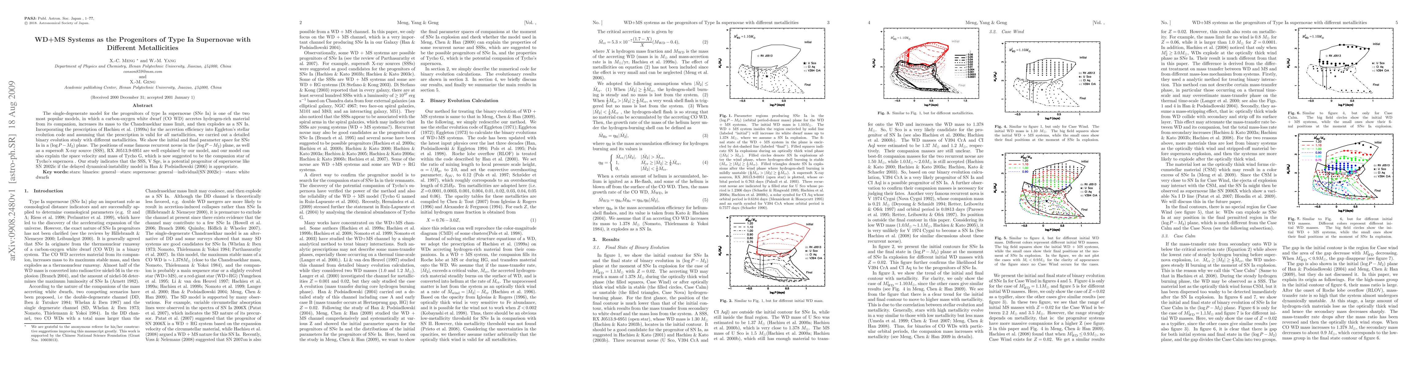 This paper explores the single-degenerate model for type Ia supernovae progenitors, demonstrating that WD+MS systems with varying metallicities can lead to different SN Ia outcomes. The study uses detailed binary evolution models and shows that these systems can explain various observed phenomena, including recurrent novae and supersoft X-ray sources.