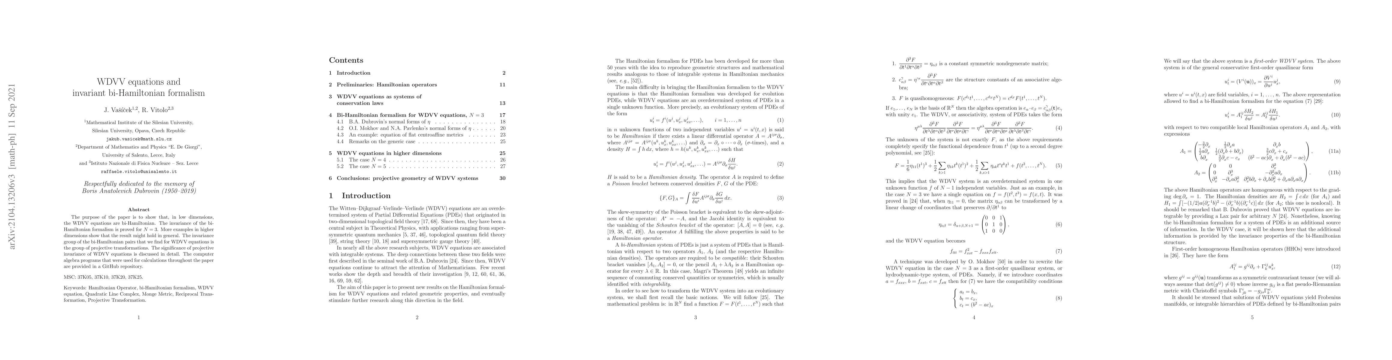 The paper demonstrates that low-dimensional WDVV equations are bi-Hamiltonian and proves the invariance of this formalism for $N=3$. The findings suggest a broader applicability in higher dimensions and emphasize the projective invariance of these equations. Calculations were assisted by computer algebra tools available on GitHub.