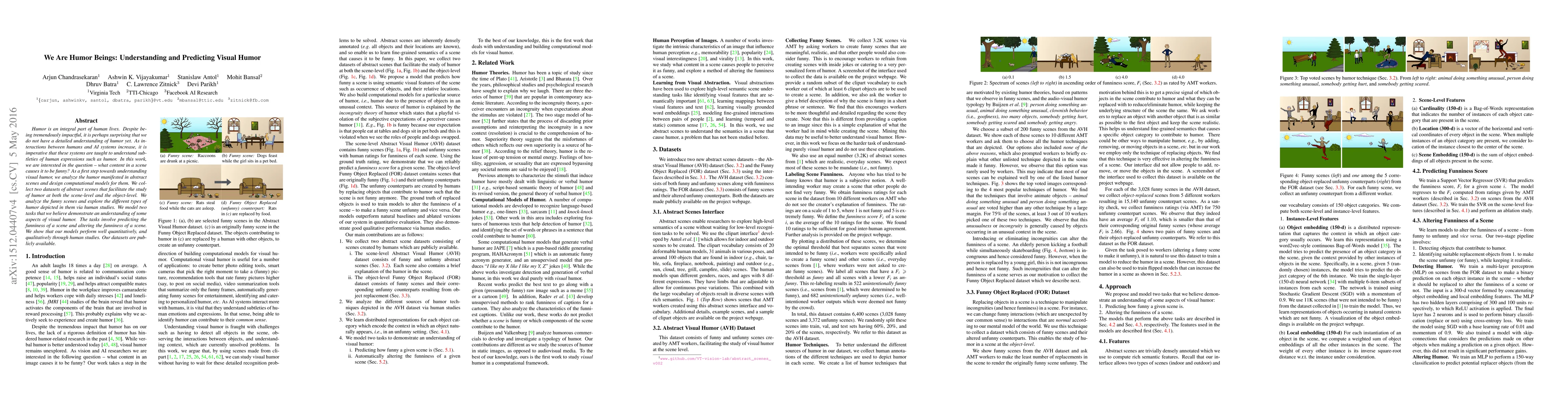 This paper explores the computational understanding of visual humor by analyzing abstract scenes and developing models to predict and alter scene funniness. The study includes two datasets and demonstrates successful model performance through quantitative and qualitative human evaluations.