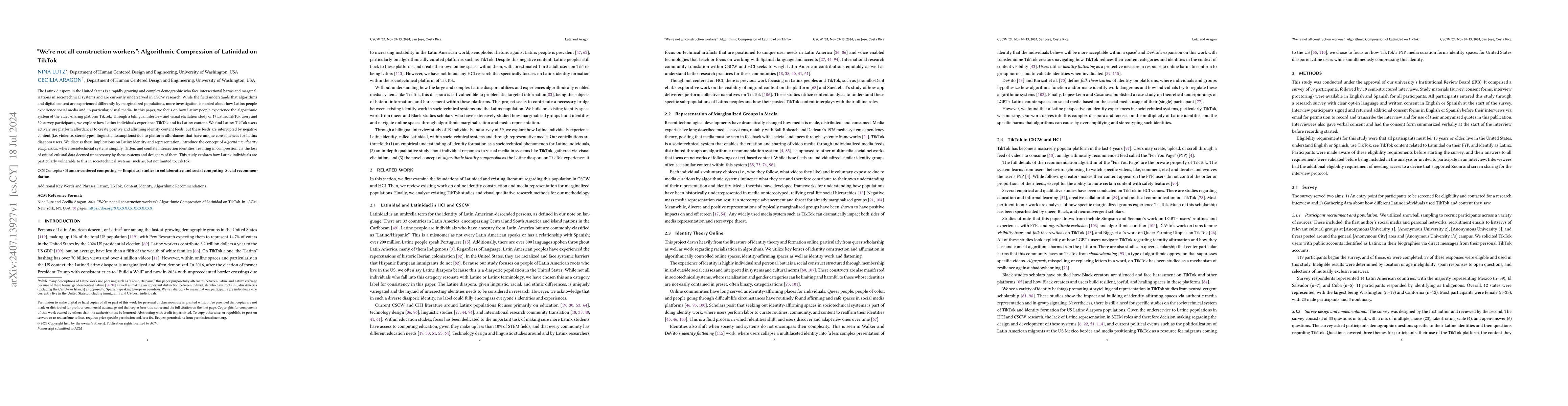 This study investigates how Latinx individuals experience TikTok's algorithmic content delivery, highlighting their use of platform features to create affirming identity content, which is often overshadowed by negative stereotypes and cultural misrepresentations. It introduces the concept of "algorithmic identity compression," emphasizing how sociotechnical systems simplify Latinx identities, resulting in the loss of critical cultural data.