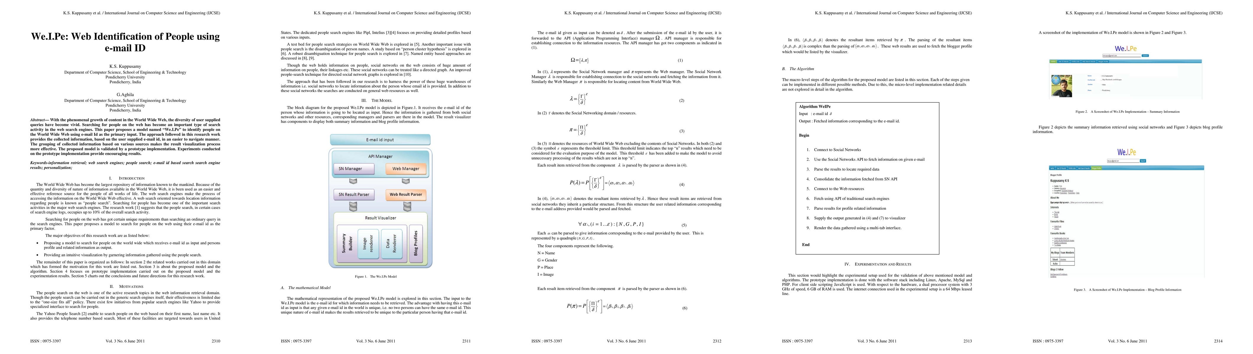 This paper introduces "We.I.Pe," a model for identifying individuals on the web using email IDs as the primary input. The model organizes and visualizes collected information from various sources for better navigation, validated through a prototype with promising experimental results.