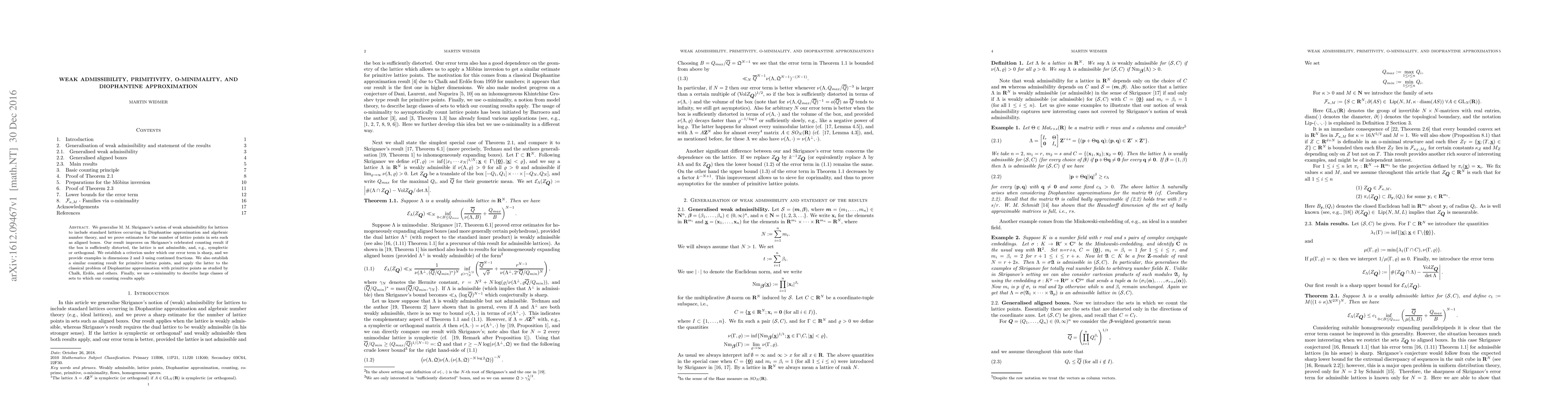 This paper generalizes Skriganov's concept of weak admissibility for lattices, improving counting estimates for lattice points in distorted boxes, especially for symplectic or orthogonal lattices. It also extends these results to primitive lattice points and applies them to classical Diophantine approximation problems, utilizing o-minimality to describe large classes of sets.