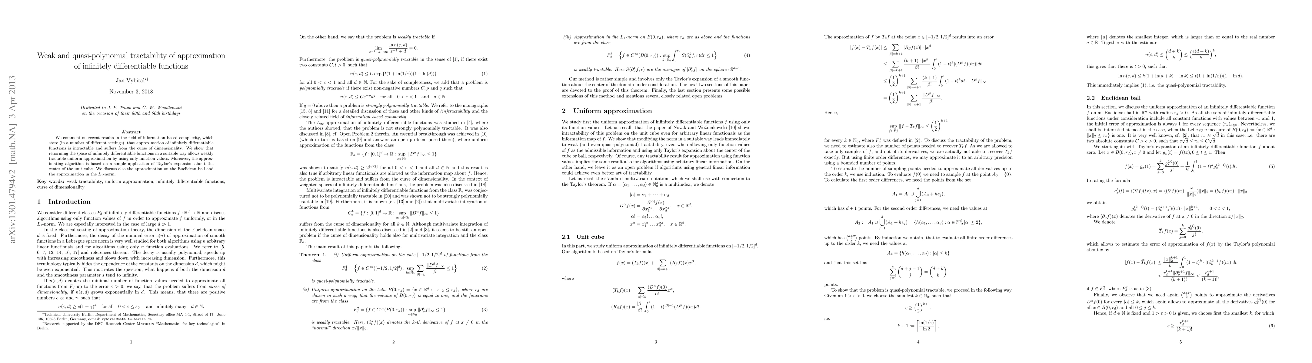 This research paper challenges previous findings on the intractability of approximating infinitely differentiable functions in high dimensions. It introduces a novel renorming technique for these function spaces, enabling weakly tractable approximation using only function values and Taylor's expansion. The method also extends to approximations on the Euclidean ball and in the $L_1$-norm, with implications for numerical integration problems.