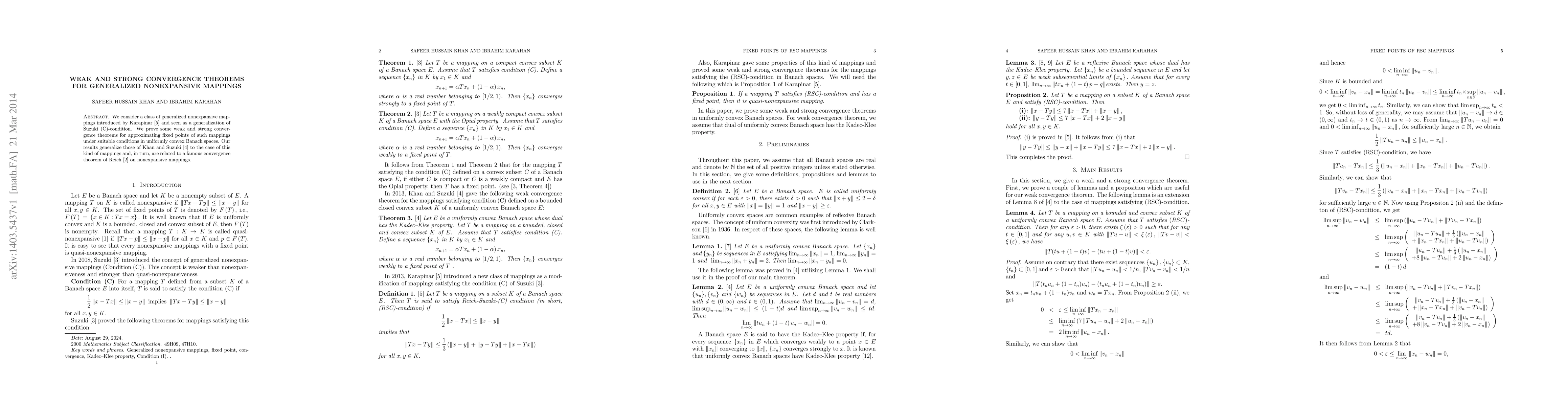 We consider a class of generalized nonexpansive mappings introduced by Karapinar [5] and seen as a generalization of Suzuki (C)-condition. We prove some weak and strong convergence theorems for approximating fixed points of such mappings under suitable conditions in uniformly convex Banach spaces. Our results generalize those of Khan and Suzuki [4] to the case of this kind of mappings and, in turn, are related to a famous convergence theorem of Reich [2] on nonexpansive mappings.