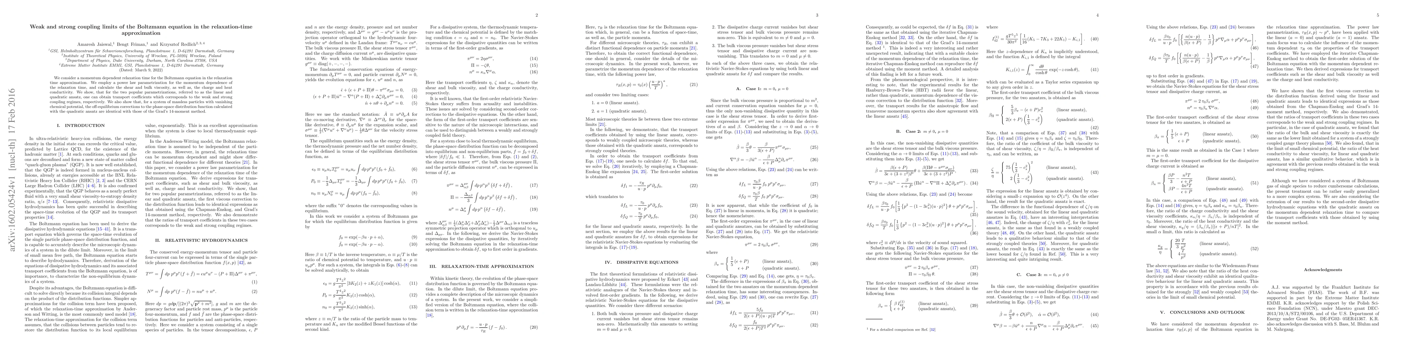 This paper investigates the Boltzmann equation with a momentum-dependent relaxation time, calculating transport coefficients like shear and bulk viscosity, and conductivities. It demonstrates that different parametrizations can represent weak and strong coupling regimes, and finds equivalence between the quadratic ansatz and Grad's 14-moment method for massless particles.