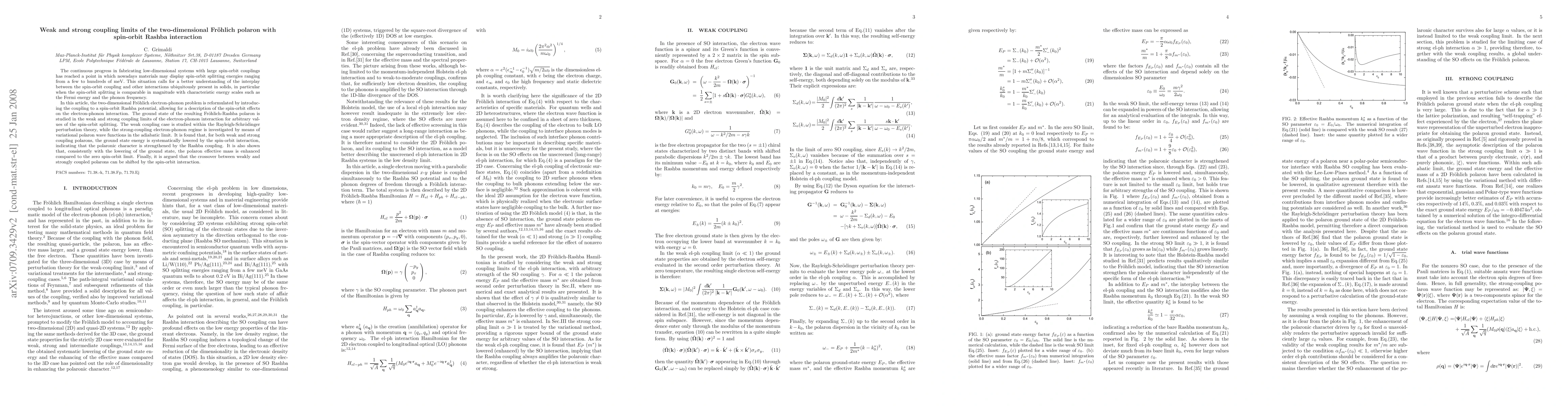 This paper investigates the two-dimensional Fr\"ohlich polaron with added spin-orbit Rashba interaction in both weak and strong electron-phonon coupling regimes. It finds that the spin-orbit interaction strengthens polaronic character and enhances the polaron's effective mass, shifting the crossover between weak and strong coupling polarons.