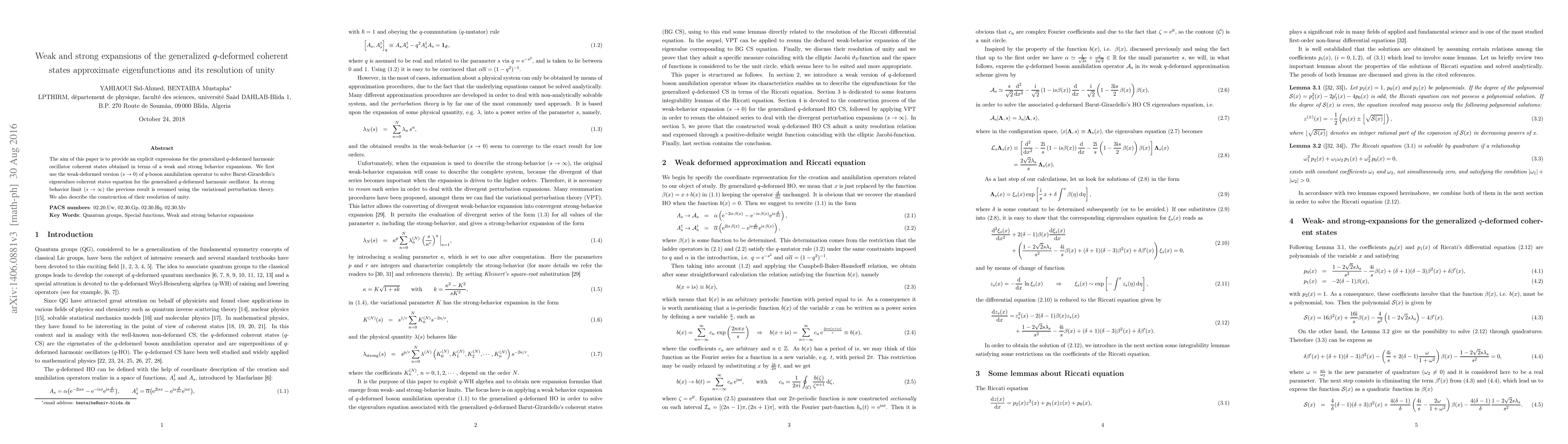 The aim of this paper is to provide an explicit expressions for the generalized q-deformed harmonic oscillator coherent states obtained in terms of a weak and strong behavior expansions. We first use the weak (s --> 0) deformed version of q-boson annihilation operator to solve Barut-Girardello's eigenvalues coherent states equation for the generalized q-deformed harmonic oscillator. In strong behavior limit (s --> 1) the previous result is resumed using the variational perturbation theory. We also describe the construction of their resolution of unity.
