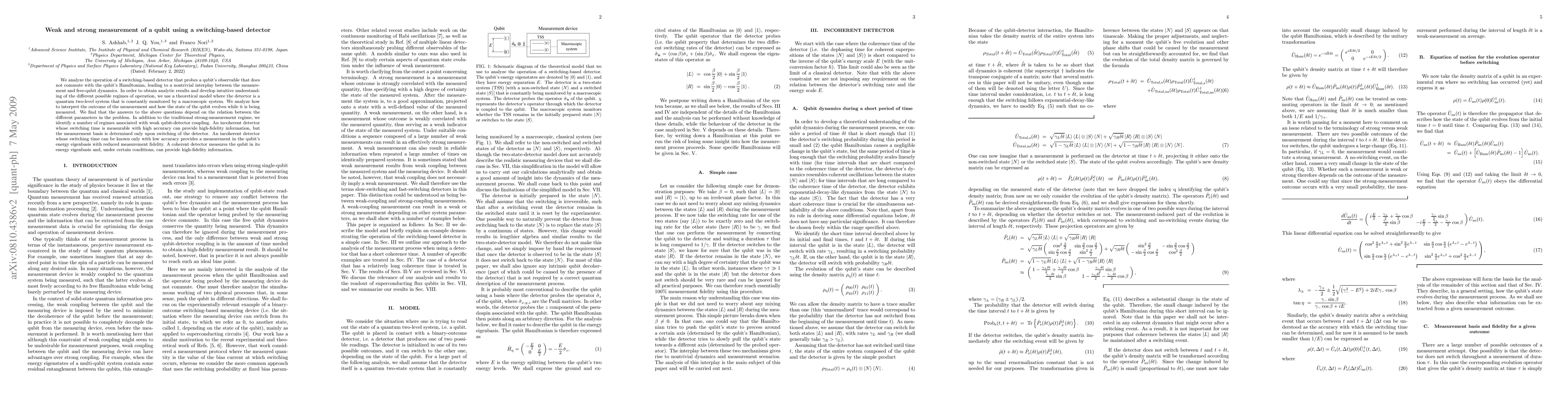 This paper investigates the dynamics of a switching-based detector measuring a qubit's non-Hamiltonian observable, identifying distinct regimes of weak and strong measurement. The study reveals that the detector's switching time accuracy determines the fidelity and basis of the measurement outcome.