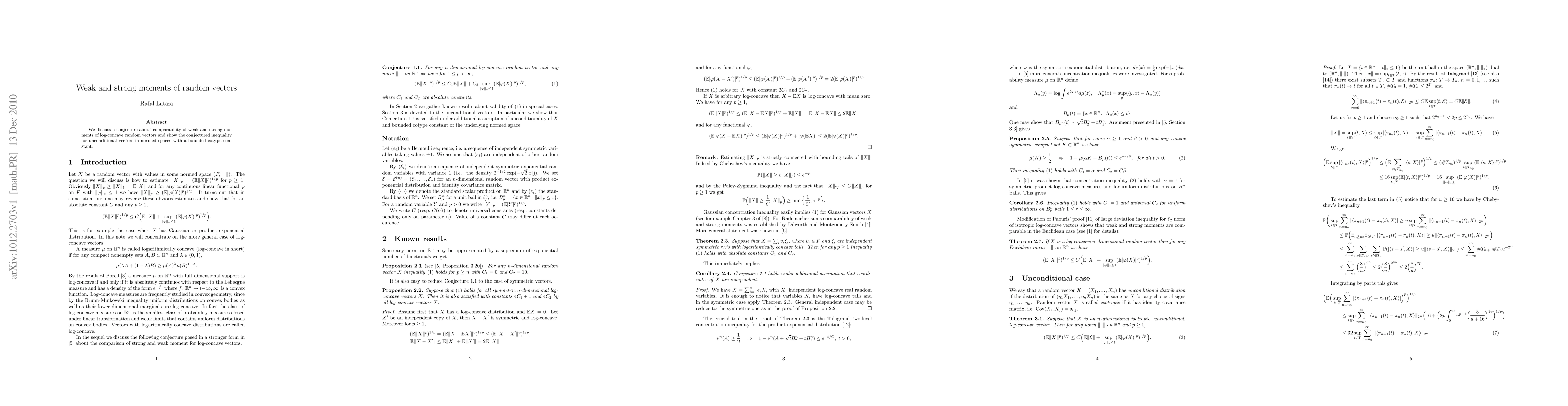 Summary: This paper investigates the conjecture regarding the comparability of weak and strong moments for log-concave random vectors, proving the conjectured inequality specifically for unconditional vectors in normed spaces with a bounded cotype constant.