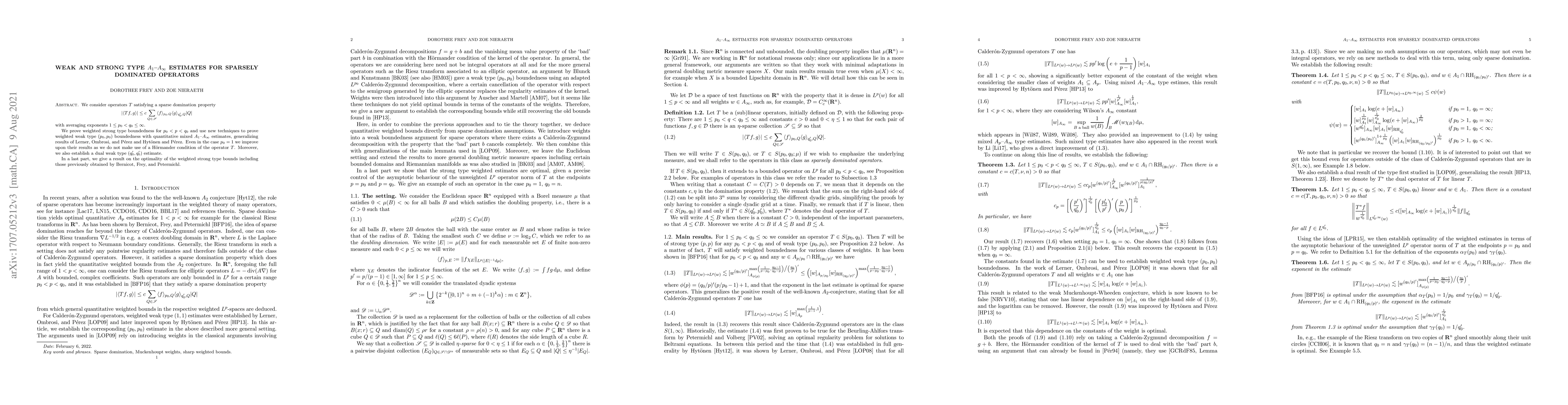 We consider operators $T$ satisfying a sparse domination property \[ |\langle