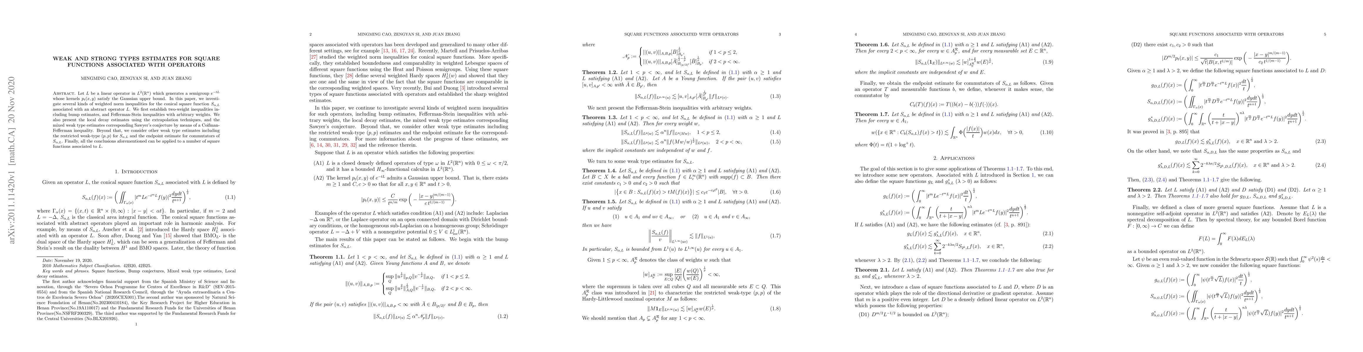 This paper investigates weighted norm inequalities for square functions $S_{\alpha,L}$ linked to a linear operator $L$ in $L^2(\mathbb{R}^n)$. It establishes two-weight inequalities, local decay estimates, and weak type estimates, including the restricted weak-type $(p, p)$ and endpoint estimates for commutators, applying these results to various square functions.