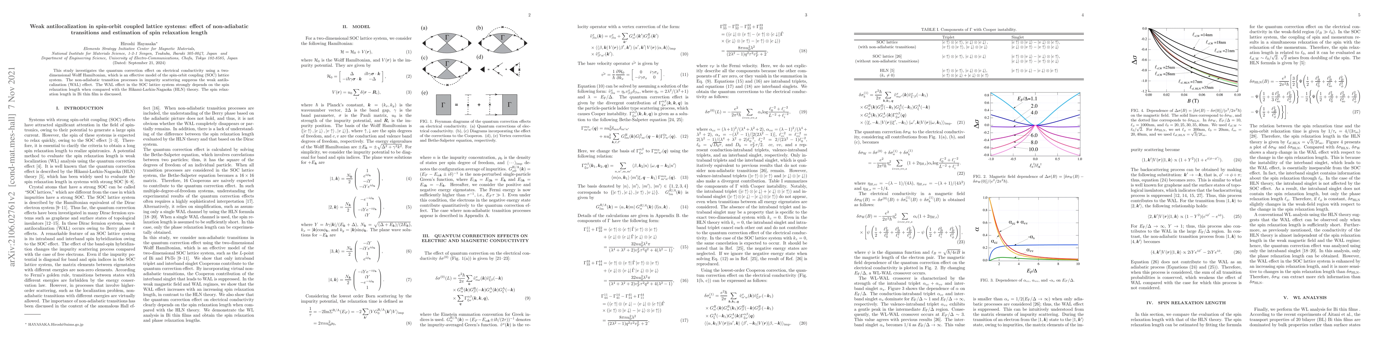 This study investigates the quantum correction effect on electrical conductivity using a two-dimensional Wolff Hamiltonian, which is an effective model of the spin-orbit coupling (SOC) lattice system. The non-adiabatic transition processes in impurity scattering suppress the weak anti-localization (WAL) effect. The WAL effect in the SOC lattice system strongly depends on the spin relaxation length when compared with the Hikami-Larkin-Nagaoka (HLN) theory. The spin relaxation length in Bi thin film is discussed.