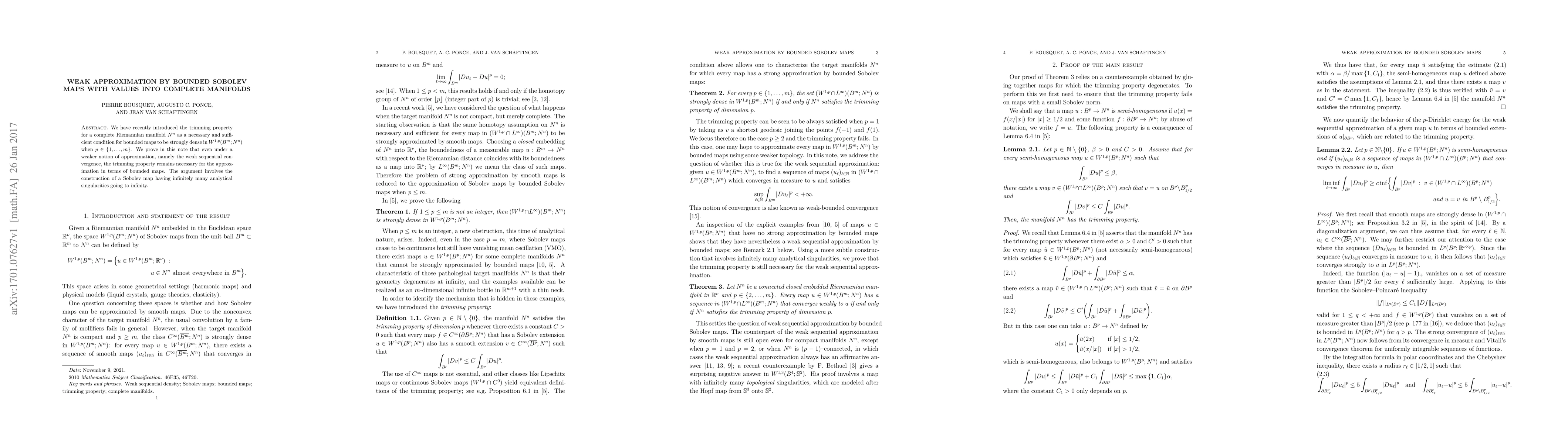 We have recently introduced the trimming property for a complete Riemannian manifold $N^{n}$ as a necessary and sufficient condition for bounded maps to be strongly dense in $W^{1, p}(B^m; N^{n})$ when $p \in \{1, \dotsc, m\}$. We prove in this note that even under a weaker notion of approximation, namely the weak sequential convergence, the trimming property remains necessary for the approximation in terms of bounded maps. The argument involves the construction of a Sobolev map having infinitely many analytical singularities going to infinity.