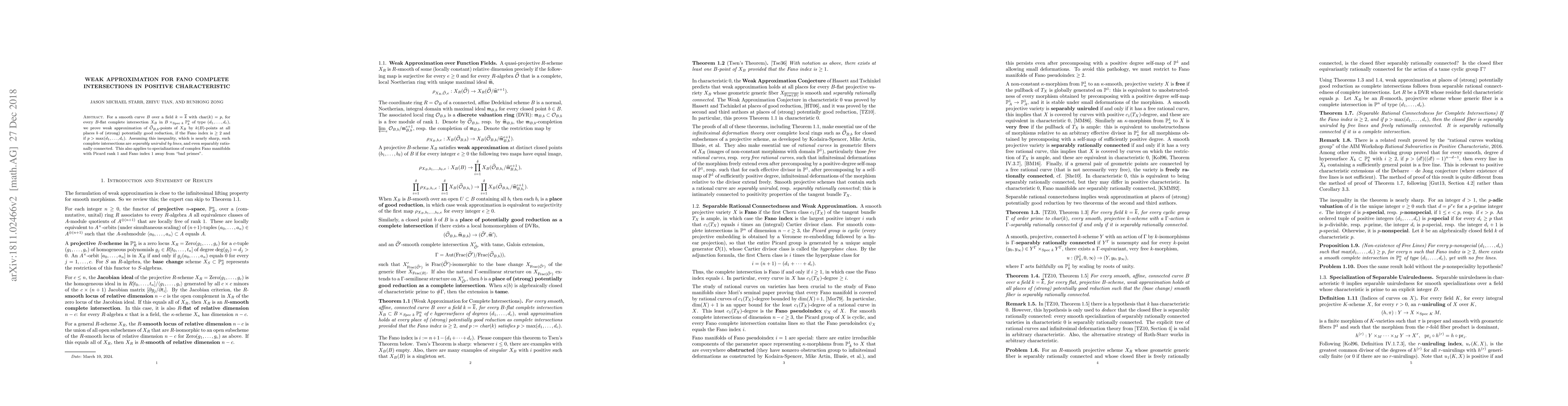 Researchers prove that certain complete intersections in algebraic curves have weak approximation by rational points at places of good reduction, even when the characteristic is higher than the indices of the intersection, under certain conditions.