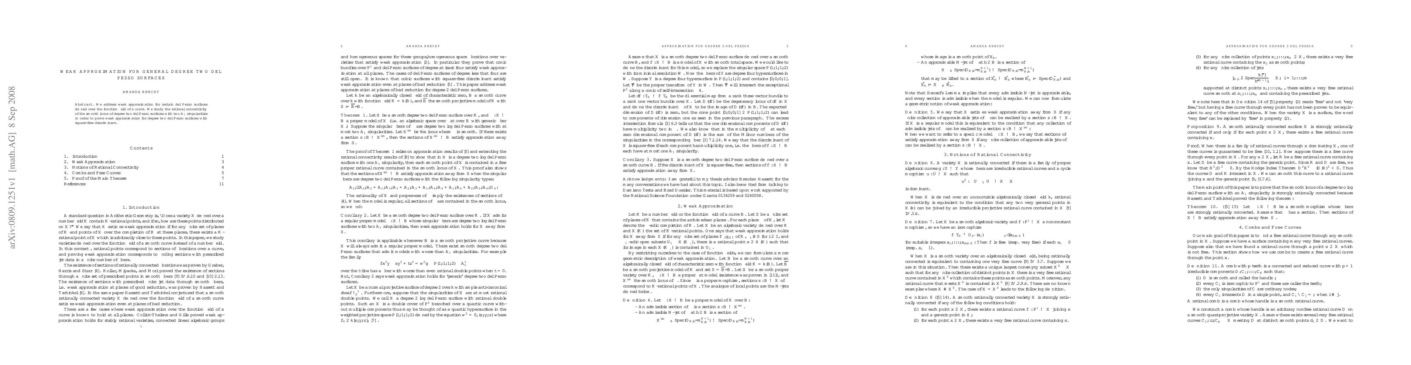 This paper investigates weak approximation properties for degree two del Pezzo surfaces over function fields of curves, proving the phenomenon for surfaces with square-free discriminant through the analysis of their rational connectivity and singular locus.