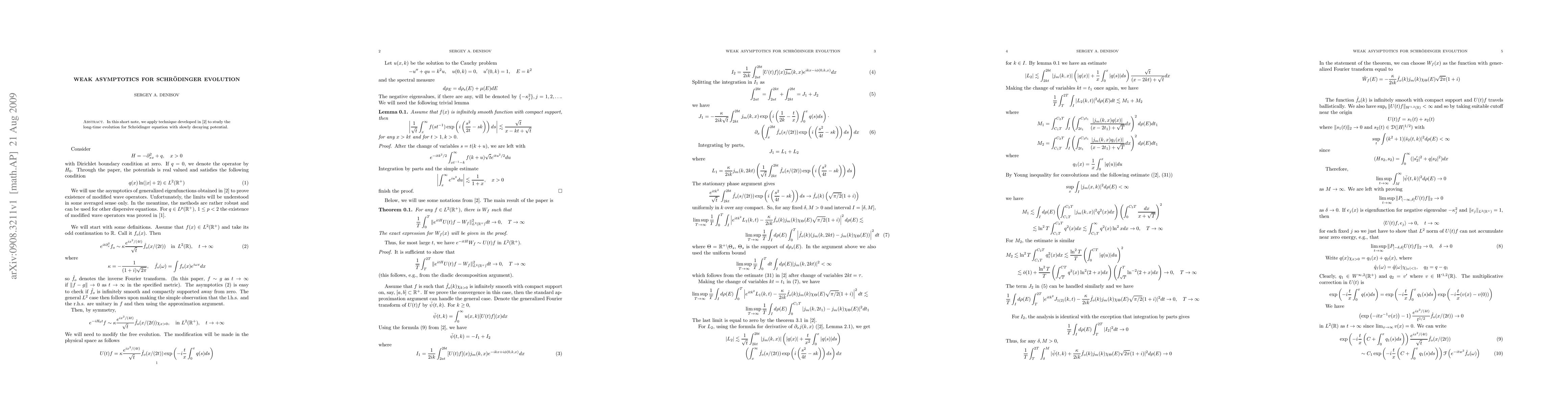 This research paper explores the long-term behavior of Schrodinger evolution using a new technique, revealing key insights into its asymptotic properties.