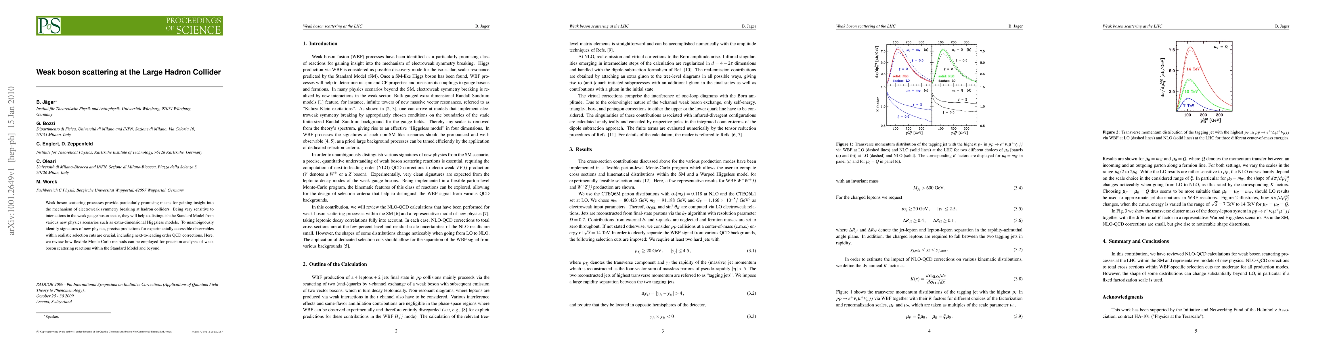 This paper reviews the use of Monte-Carlo methods for precise analyses of weak boson scattering at the Large Hadron Collider, emphasizing their role in distinguishing the Standard Model from new physics scenarios, including extra-dimensional Higgsless models, through next-to-leading order QCD corrections.