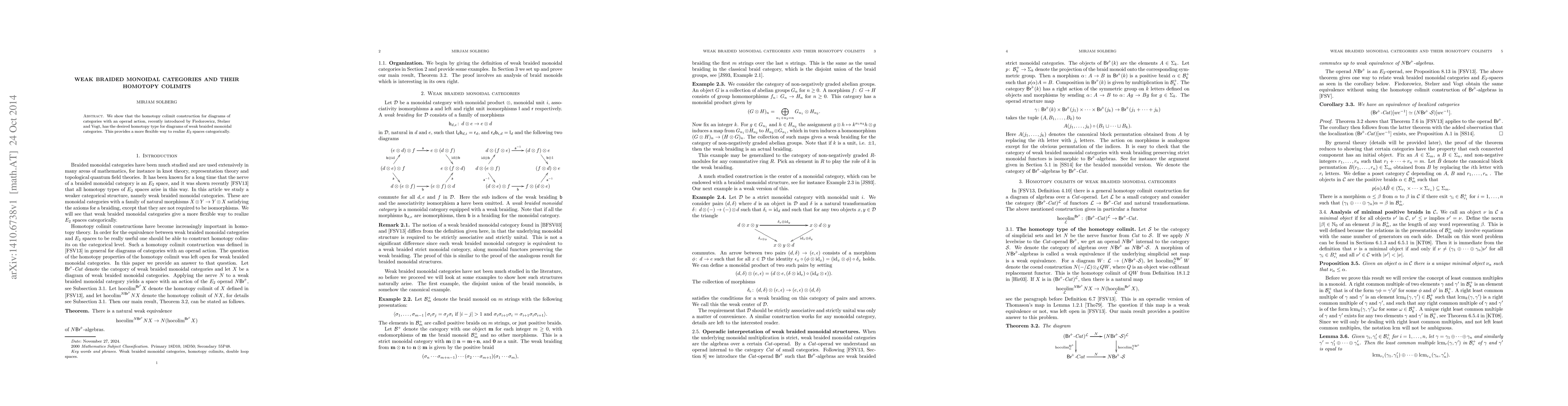 This paper demonstrates that the homotopy colimit construction for diagrams of weak braided monoidal categories preserves the desired homotopy type, offering a flexible categorical approach to realize E-2 spaces. This provides a significant advancement in the study of categorical structures with operad actions.