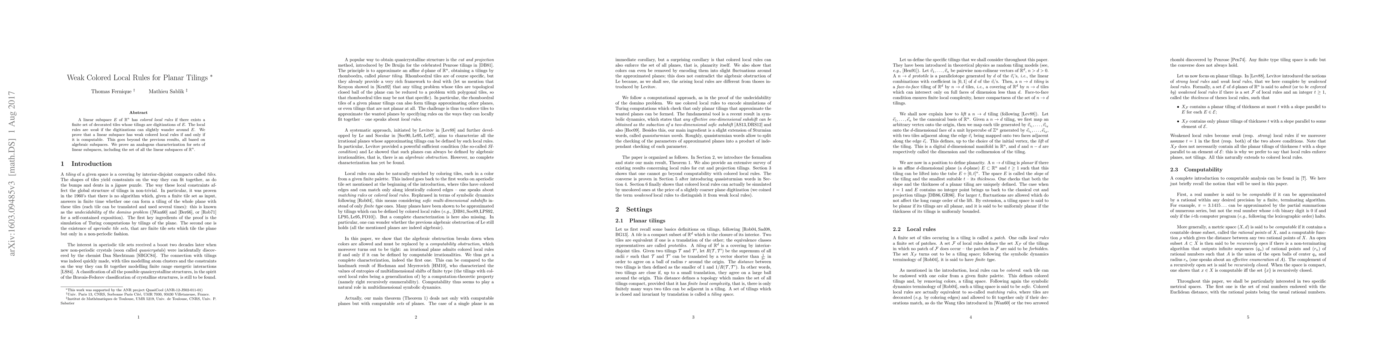A linear subspace $E$ of $\mathbb{R}^n$ has colored local rules if there exists a finite set of decorated tiles whose tilings are digitizations of $E$. The local rules are weak if the digitizations can slightly wander around $E$. We prove that a linear subspace has weak colored local rules if and only if it is computable. This goes beyond the previous results, all based on algebraic subspaces. We prove an analogous characterization for sets of linear subspaces, including the set of all the linear subspaces of $\mathbb{R}^n$.