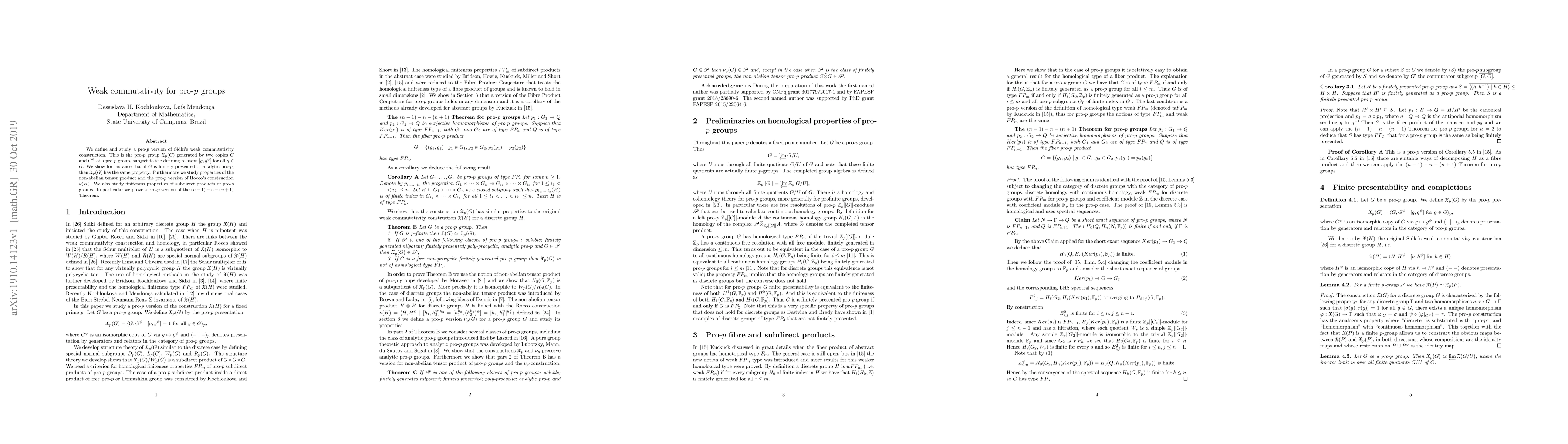 We define and study a pro-$p$ version of Sidki's weak commutativity construction. This is the pro-$p$ group $\mathfrak{X}_p(G)$ generated by two copies $G$ and $G^{\psi}$ of a pro-$p$ group, subject to the defining relators $[g,g^{\psi}]$ for all $g \in G$. We show for instance that if $G$ is finitely presented or analytic pro-$p$, then $\mathfrak{X}_p(G)$ has the same property. Furthermore we study properties of the non-abelian tensor product and the pro-$p$ version of Rocco's construction $\nu(H)$. We also study finiteness properties of subdirect products of pro-$p$ groups. In particular we prove a pro-$p$ version of the $(n-1)-n-(n+1)$ Theorem.