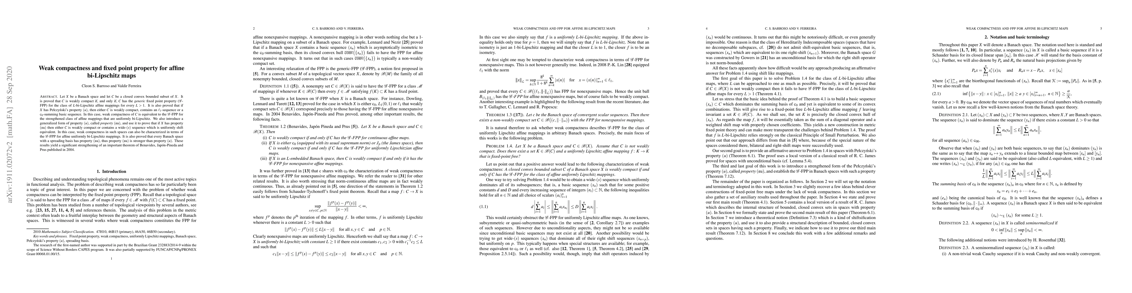 Let $X$ be a Banach space and let $C$ be a closed convex bounded subset of $X$. It is proved that $C$ is weakly compact if, and only if, $C$ has the {it generic} fixed point property ($\mathcal{G}$-FPP) for the class of $L$-bi-Lipschitz affine mappings for every $L>1$. It is also proved that if $X$ has Pe\l czy\'nski's property $(u)$, then either $C$ is weakly compact, contains an $\ell_1$-sequence or a $\mathrm{c}_0$-summing basic sequence. In this case, weak compactness of $C$ is equivalent to the $\mathcal{G}$-FPP for the strengthened class of affine mappings that are uniformly bi-Lipschitz. We also introduce a generalized form of property $(u)$, called {it property $(\mathfrak{su})$}, and use it to prove that if $X$ has property $(\mathfrak{su})$ then either $C$ is weakly compact or contains a wide-$(s)$ sequence which is uniformly shift equivalent. In this case, weak compactness in such spaces can also be characterized in terms of the $\mathcal{G}$-FPP for affine uniformly bi-Lipschitz mappings. It is also proved that every Banach space with a spreading basis has property $(\mathfrak{su})$, thus property $(\mathfrak{su})$ is stronger than property $(u)$. These results yield a significant strengthening of an important theorem of Benavides, Jap\'on-Pineda and Prus published in 2004.