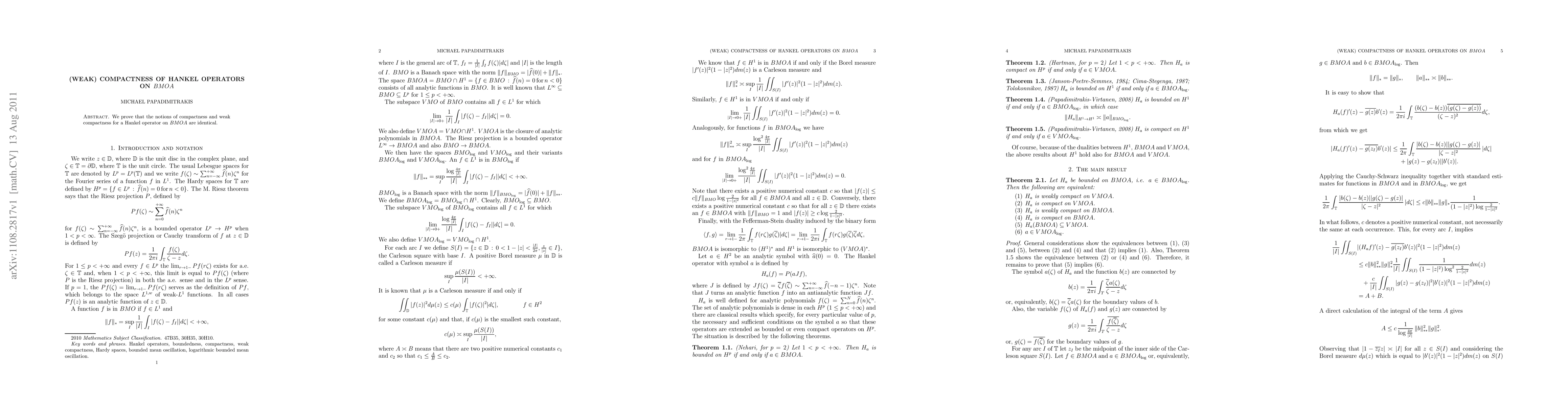 Summary: This paper demonstrates that for Hankel operators on the space of functions of bounded mean oscillation (BMOA), compactness and weak compactness are equivalent properties. This equivalence provides a deeper understanding of the behavior of these operators within the BMOA framework.