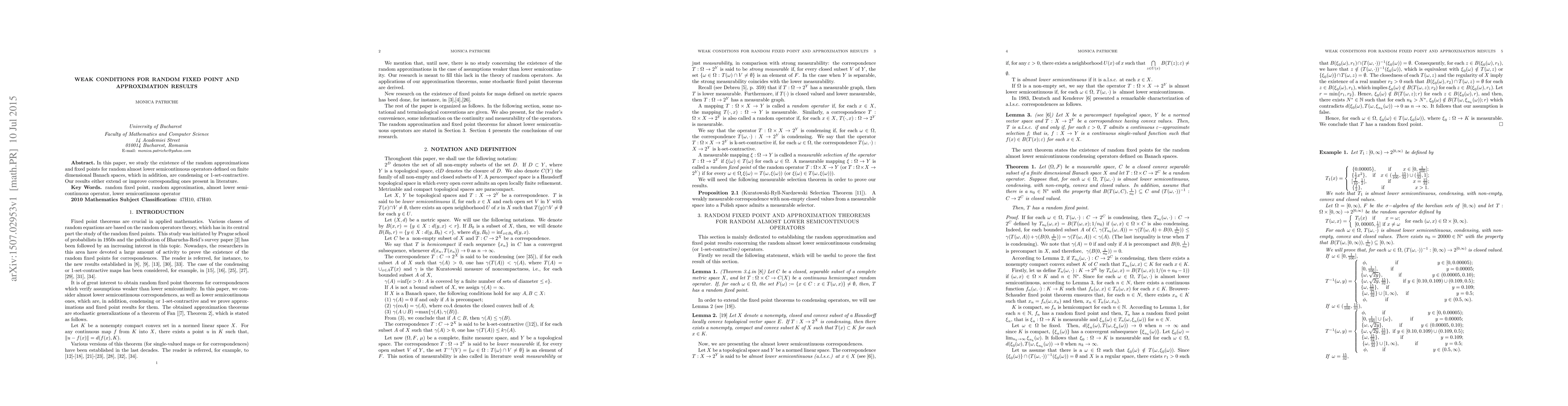 This paper investigates the existence of random approximations and fixed points for certain types of operators on finite-dimensional Banach spaces, improving existing results.