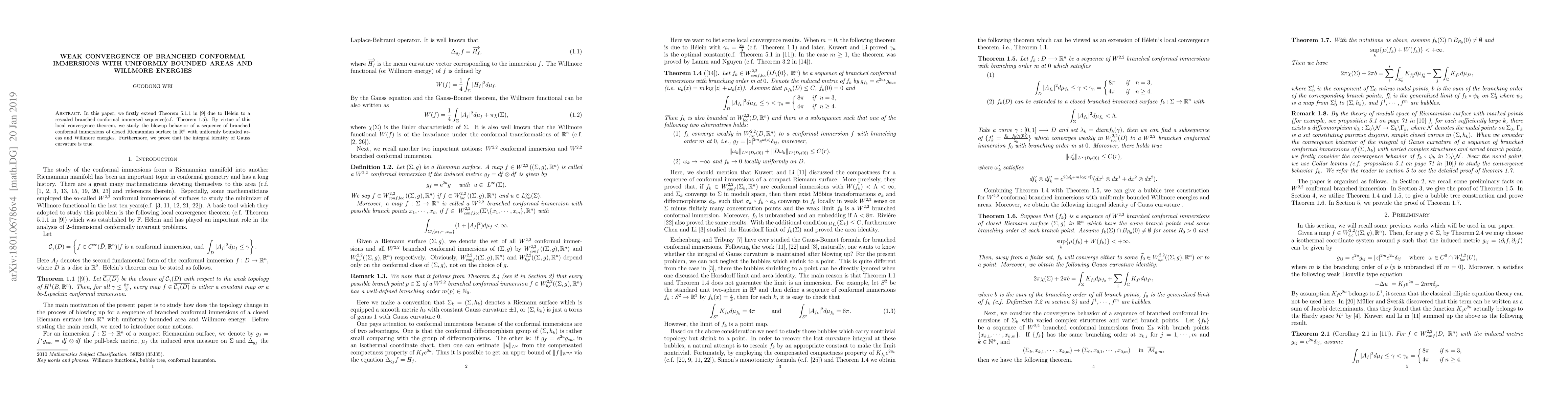 This paper studies the convergence of branched conformal immersions in Riemannian space, showing that they converge under specific conditions, such as uniformly bounded areas and Willmore energies, and proving a key identity about Gauss curvature.