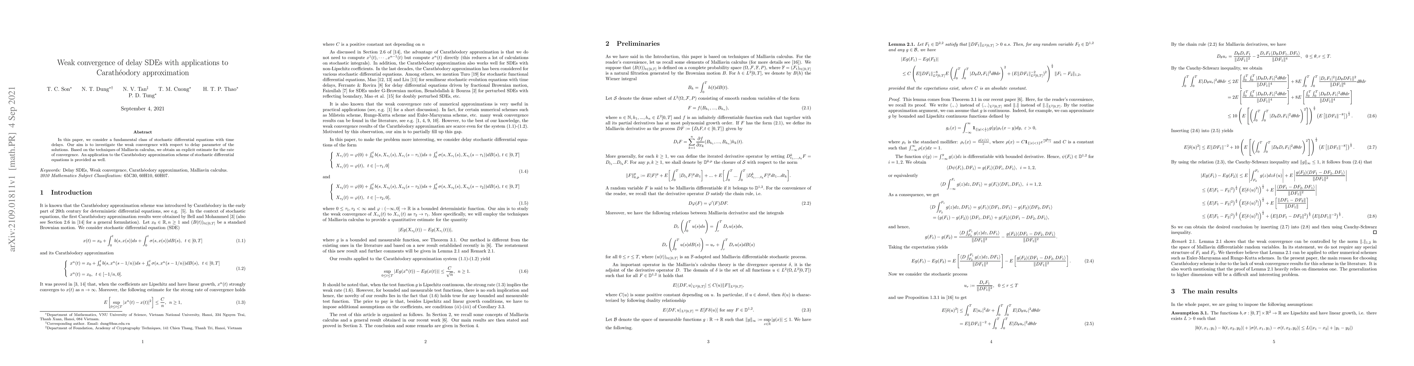 This paper investigates the weak convergence of stochastic differential equations with time delays using Malliavin calculus, providing an explicit estimate for the rate of convergence and its application to the Carathéodory approximation scheme.