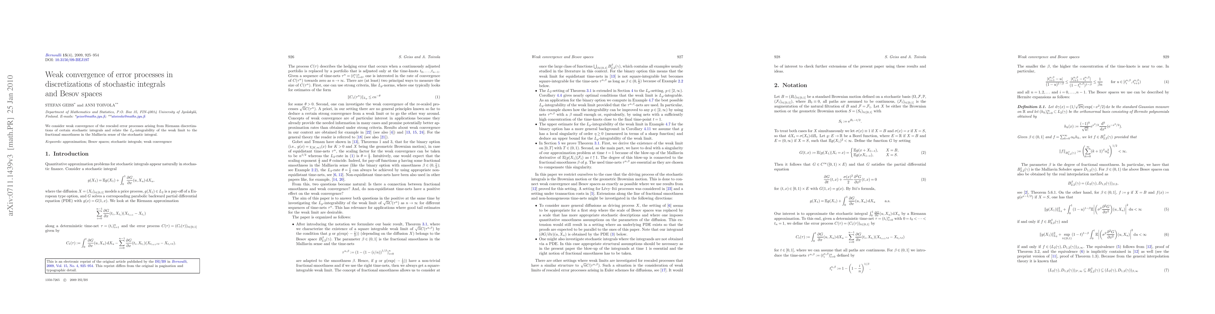 This paper investigates the weak convergence of error processes in discretizations of stochastic integrals and relates it to fractional smoothness in Besov spaces, with implications for Lp-integrability of the limit.