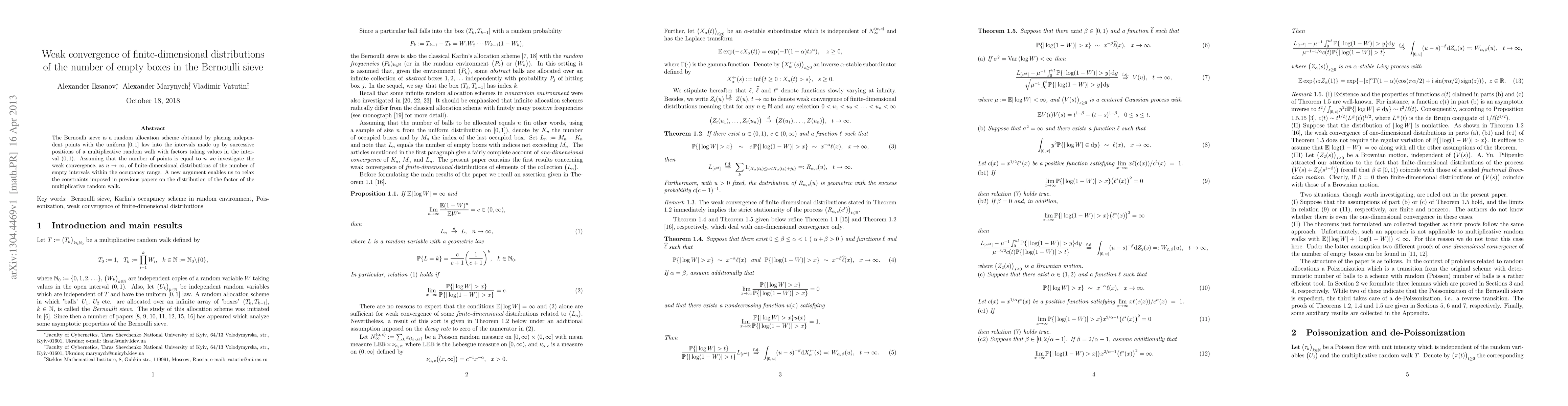 The Bernoulli sieve is a random allocation scheme obtained by placing independent points with the uniform [0,1] law into the intervals made up by successive positions of a multiplicative random walk with factors taking values in the interval (0,1). Assuming that the number of points is equal to n we investigate the weak convergence, as n tends to infinity, of finite-dimensional distributions of the number of empty intervals within the occupancy range. A new argument enables us to relax the constraints imposed in previous papers on the distribution of the factor of the multiplicative random walk.
