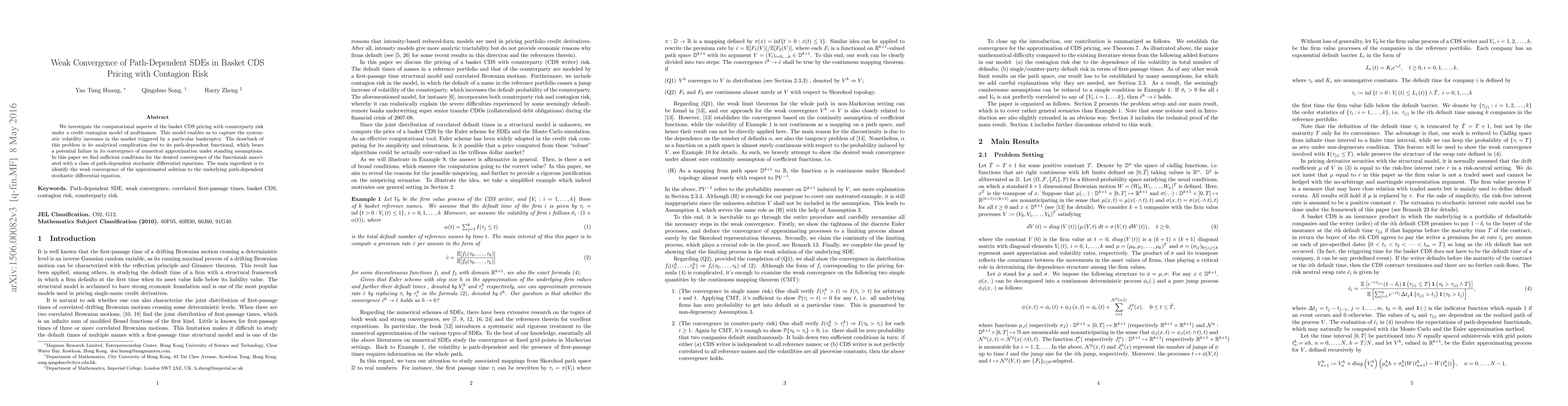 We investigate the computational aspects of the basket CDS pricing with counterparty risk under a credit contagion model of multinames. This model enables us to capture the systematic volatility increases in the market triggered by a particular bankruptcy. The drawback of this problem is its analytical complication due to its path-dependent functional, which bears a potential failure in its convergence of numerical approximation under standing assumptions. In this paper we find sufficient conditions for the desired convergence of the functionals associated with a class of path-dependent stochastic differential equations. The main ingredient is to identify the weak convergence of the approximated solution to the underlying path-dependent stochastic differential equation.