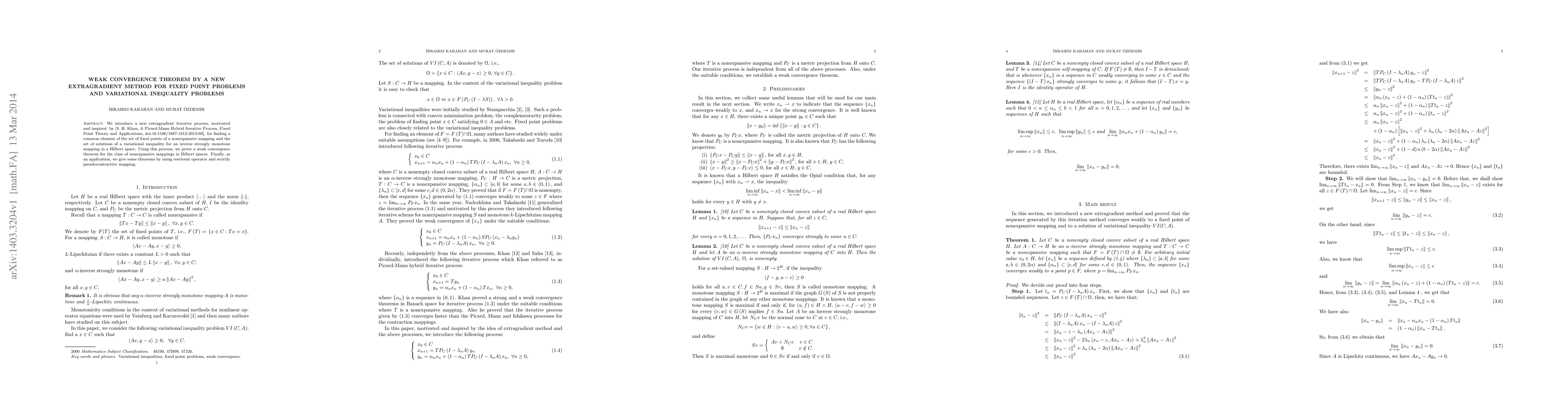 We introduce a new extragradient iterative process, motivated and inspired by [S. H. Khan, A Picard-Mann Hybrid Iterative Process, Fixed Point Theory and Applications, doi:10.1186/1687-1812-2013-69], for finding a common element of the set of fixed points of a nonexpansive mapping and the set of solutions of a variational inequality for an inverse strongly monotone mapping in a Hilbert space. Using this process, we prove a weak convergence theorem for the class of nonexpansive mappings in Hilbert spaces. Finally, as an application, we give some theorems by using resolvent operator and strictly pseudocontractive mapping.