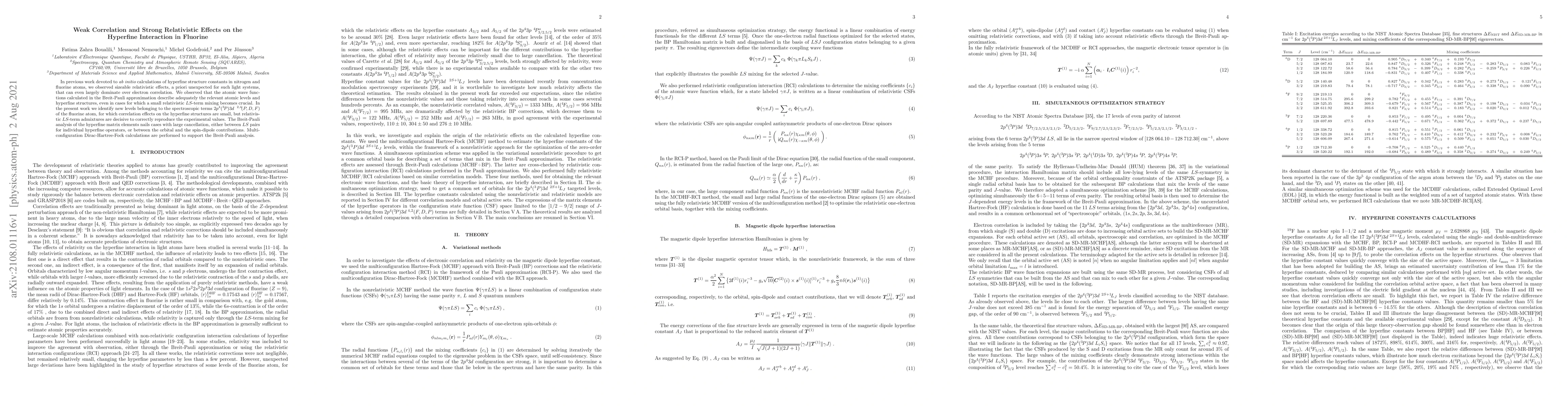 This paper investigates the hyperfine interaction in fluorine, revealing unexpected strong relativistic effects that dominate over electron correlation. The Breit-Pauli approximation effectively describes atomic levels and hyperfine structures, especially for new levels where relativistic $LS$-term mixing is crucial.