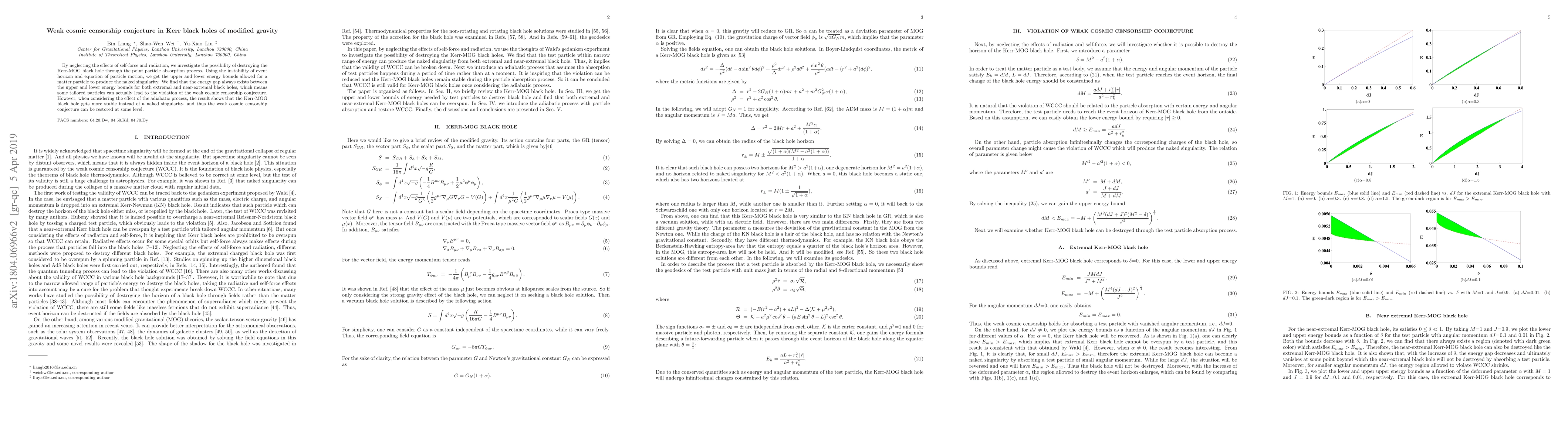 The paper presents a detailed analysis of the conditions under which the weak cosmic censorship conjecture can be violated or restored in Kerr black holes within the context of MOG, using particle absorption processes and considering the adiabatic process.