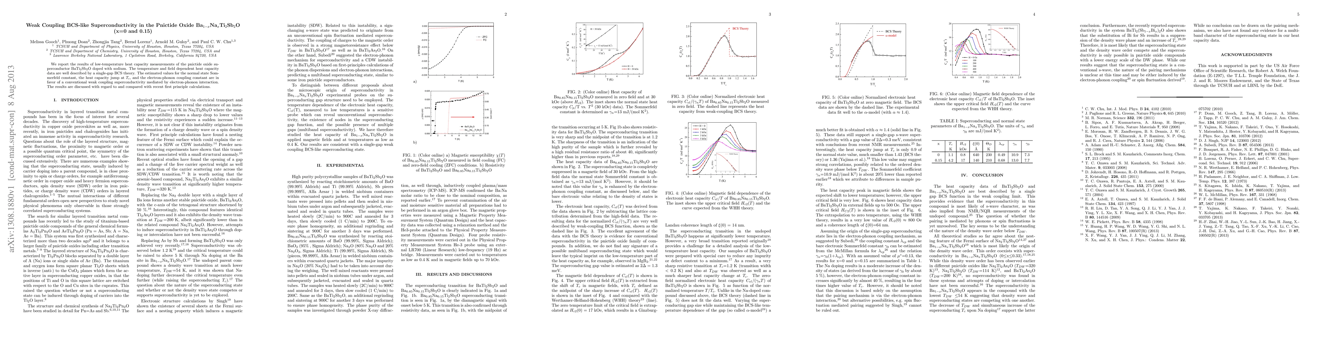 We report the results of low-temperature heat capacity measurements of the pnictide oxide superconductor BaTi$_2$Sb$_2$O doped with sodium. The temperature and field dependent heat capacity data are well described by a single-gap BCS theory. The estimated values for the normal state Sommerfeld constant, the heat capacity jump at $T_c$, and the electron-phonon coupling constant are in favor of a conventional weak coupling superconductivity mediated by electron-phonon interaction. The results are discussed with regard to and compared with recent first principle calculations.